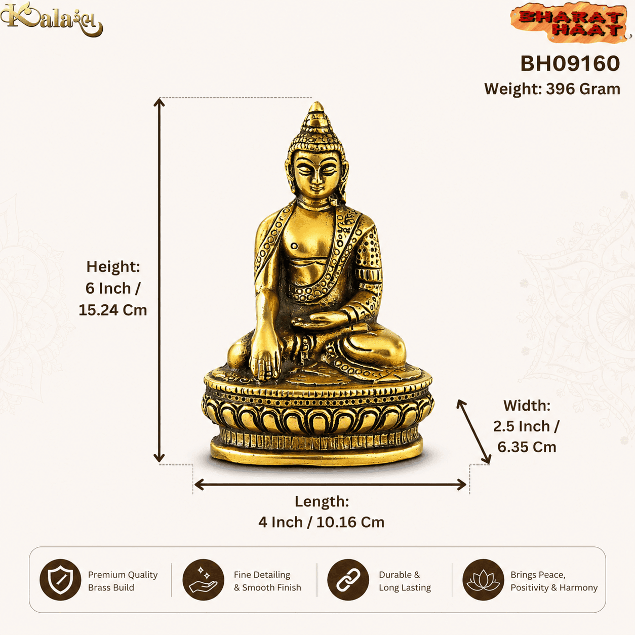 The Aluminium Buddha 6 Inch statue is not just décor—it is a symbol of balance, positivity, and inner peace. Add a touch of spirituality and sophistication to your space with this timeless piece.