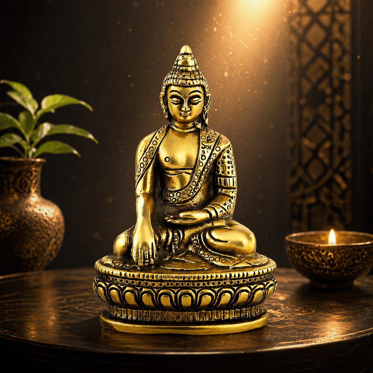 Enhance your space with this elegant The  aluminum Buddha 6-inch featuring an antique gold finish. Lightweight, durable, and beautifully detailed—perfect for décor, meditation, and gifting.
