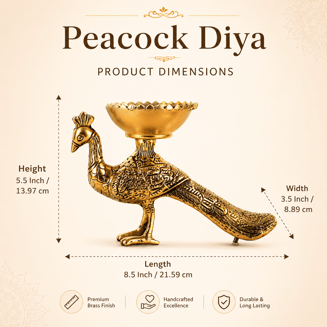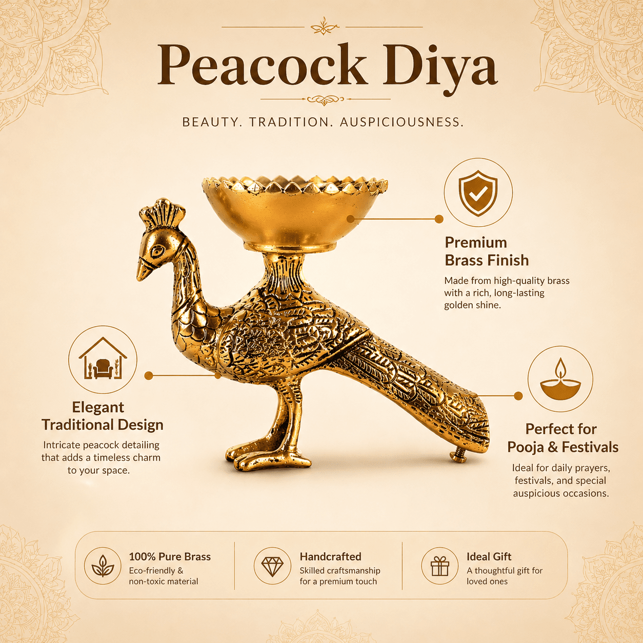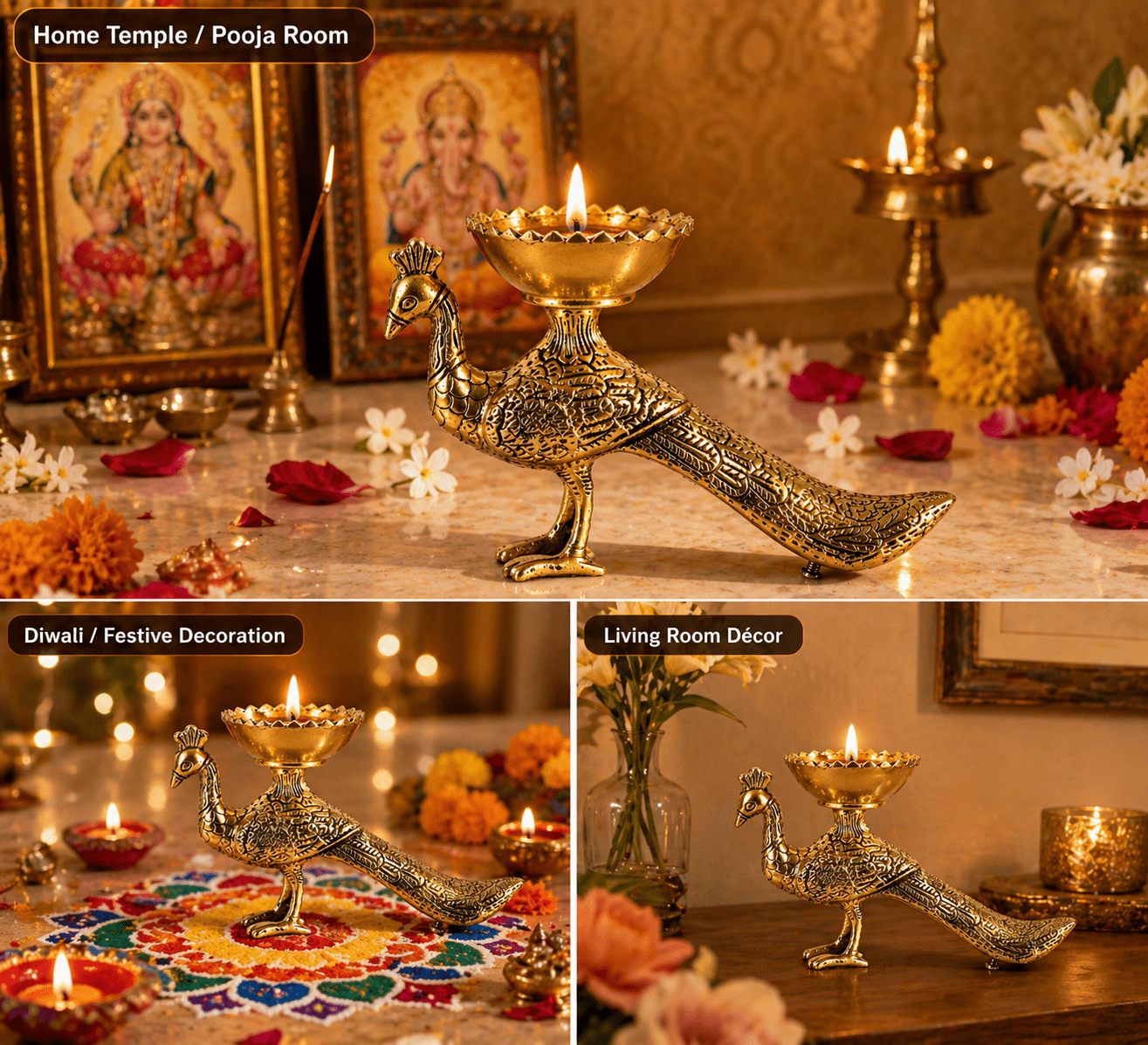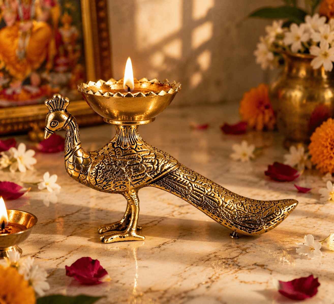 This peacock diya also makes a thoughtful and meaningful gift for loved ones during housewarmings, weddings, and festivals. It represents light, prosperity, and auspicious beginnings.