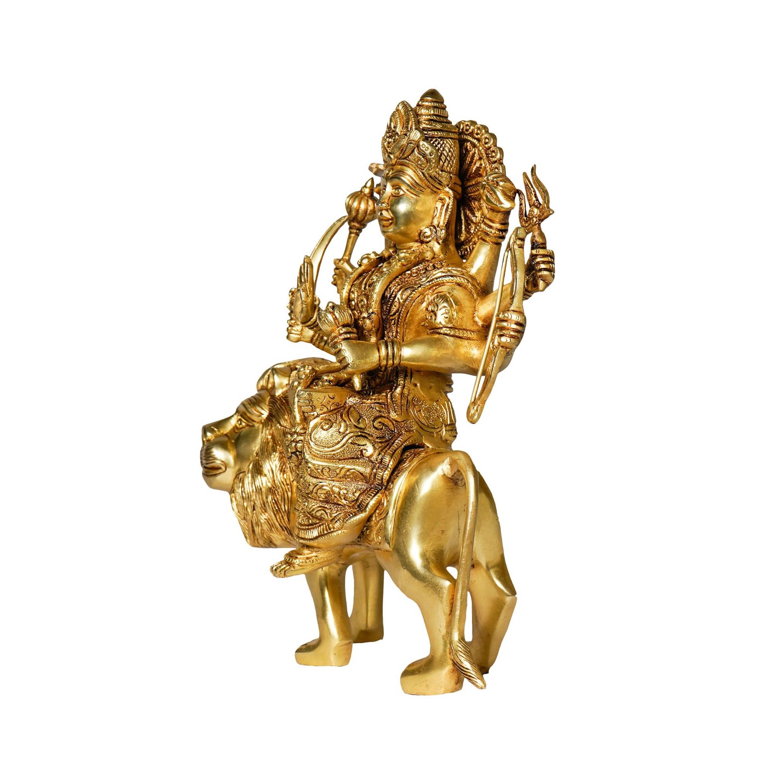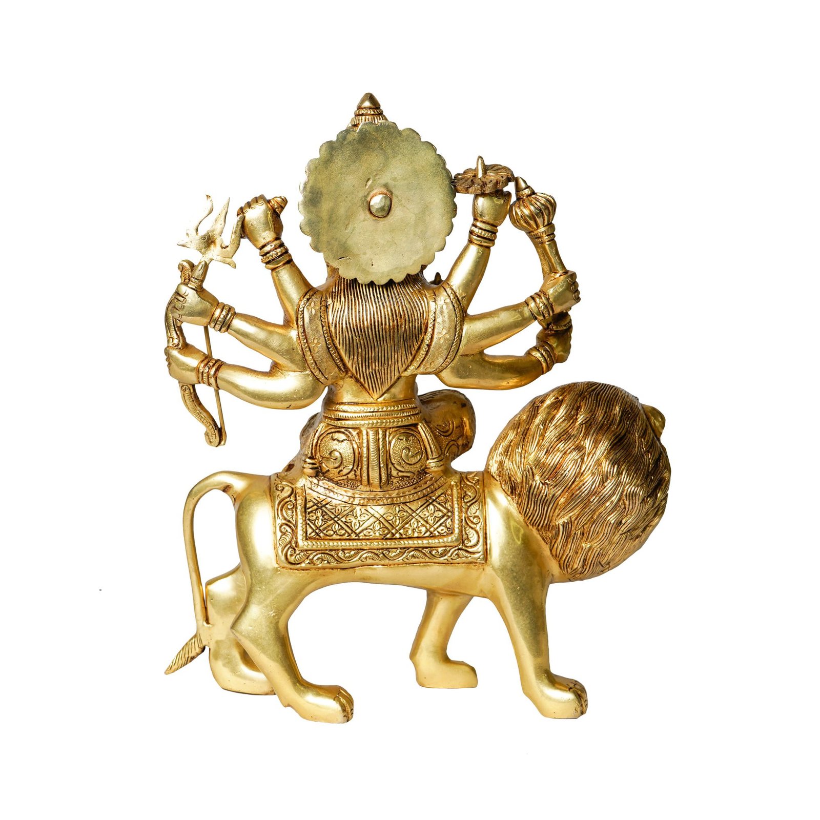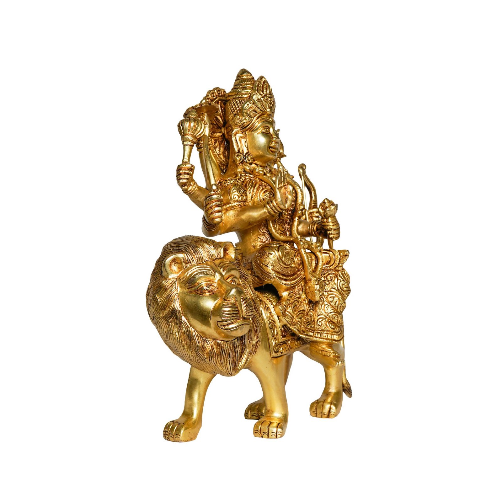 - Made of good quality brass, this Yellow-coloured Ambe Maa statue is Designing and beautifully shaped. Sturdy, easy to maintain, and long-lasting, this Ambe Maa makes a great addition to Pooja Temple.