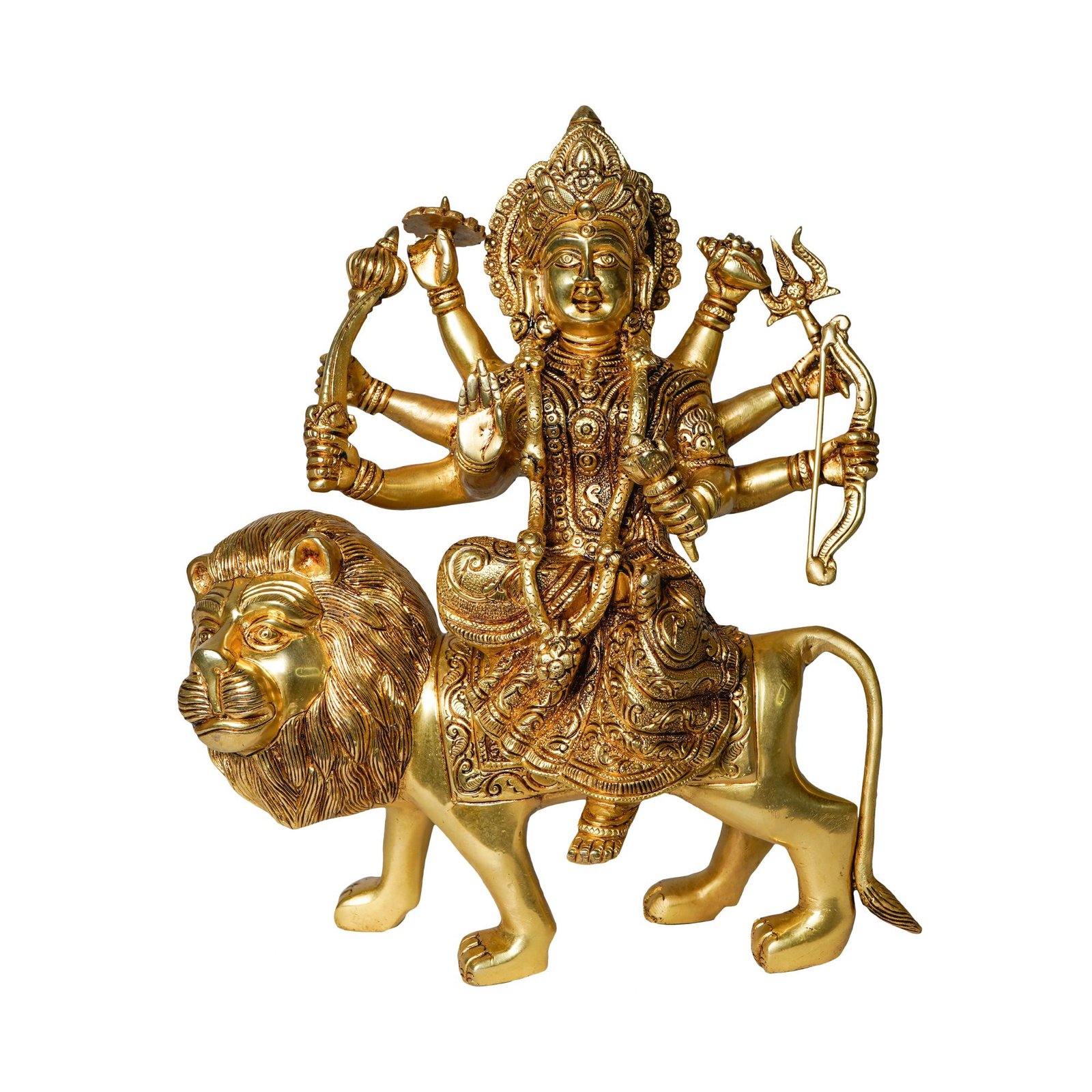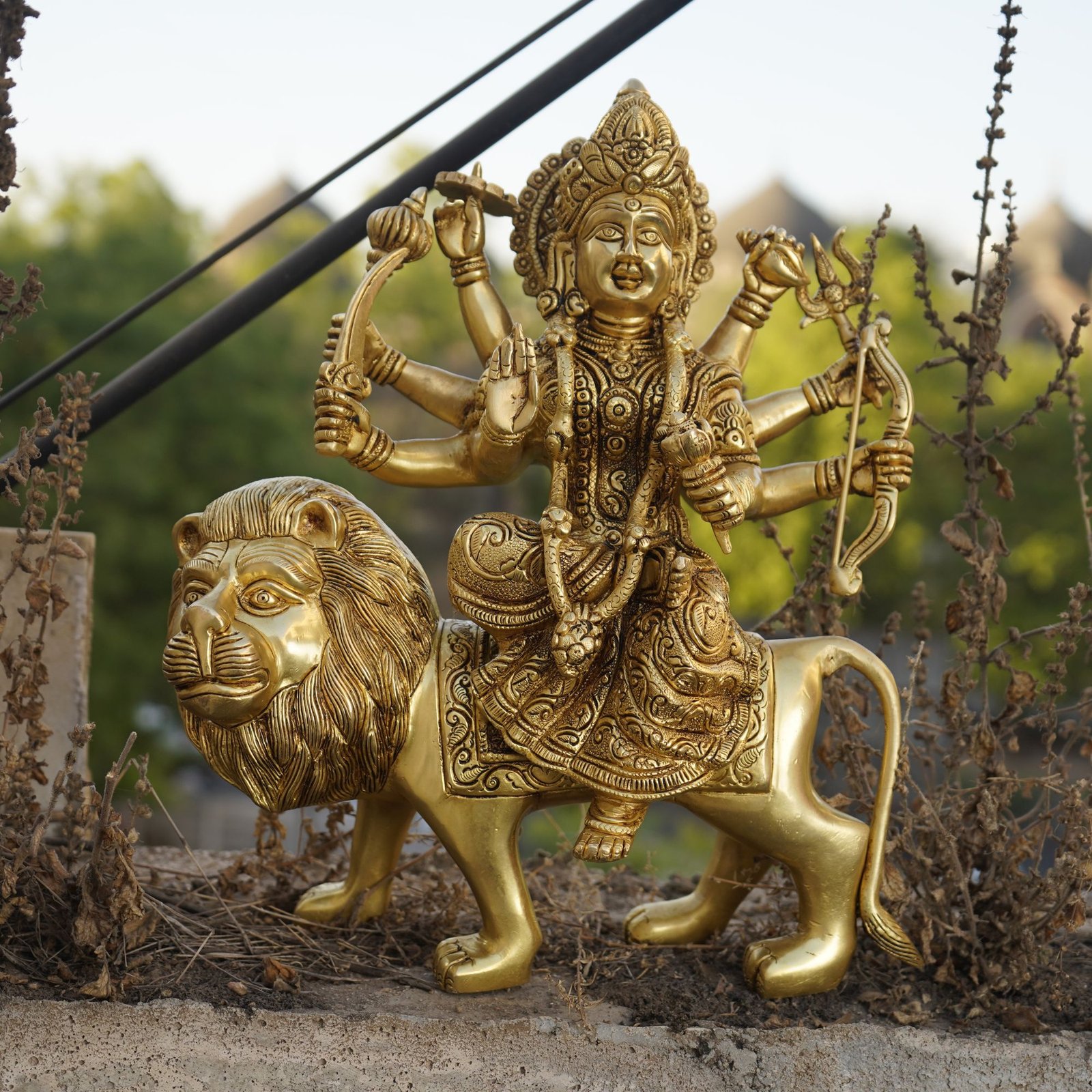 - Brass Ambe Maa Murti on Base Statue For Home Temple Navratri Diwali Special Shri Vaishno Devi Sherawali Mata Idol Durga Mata for Pooja Decoration Carving Work HANDICRAFT ART BY BHARAT HAAT.
