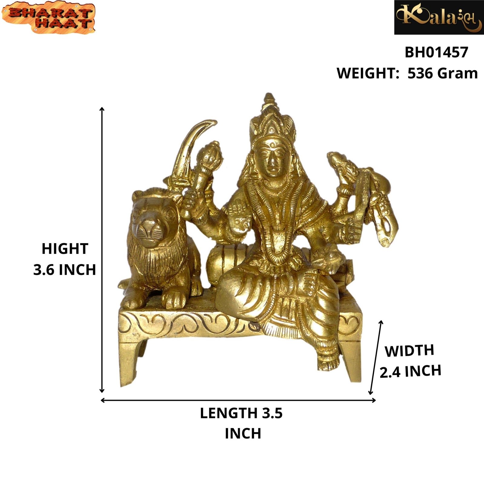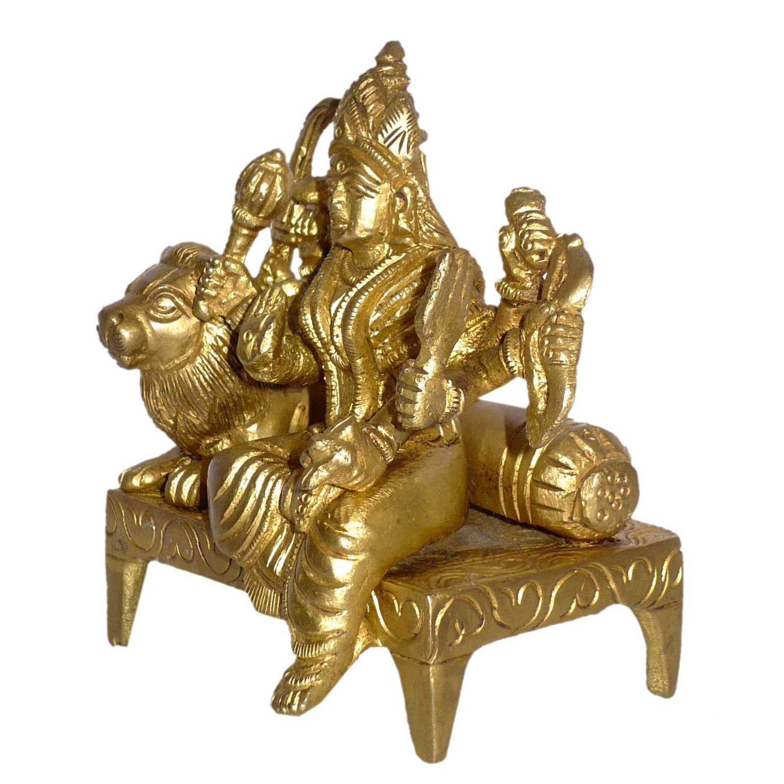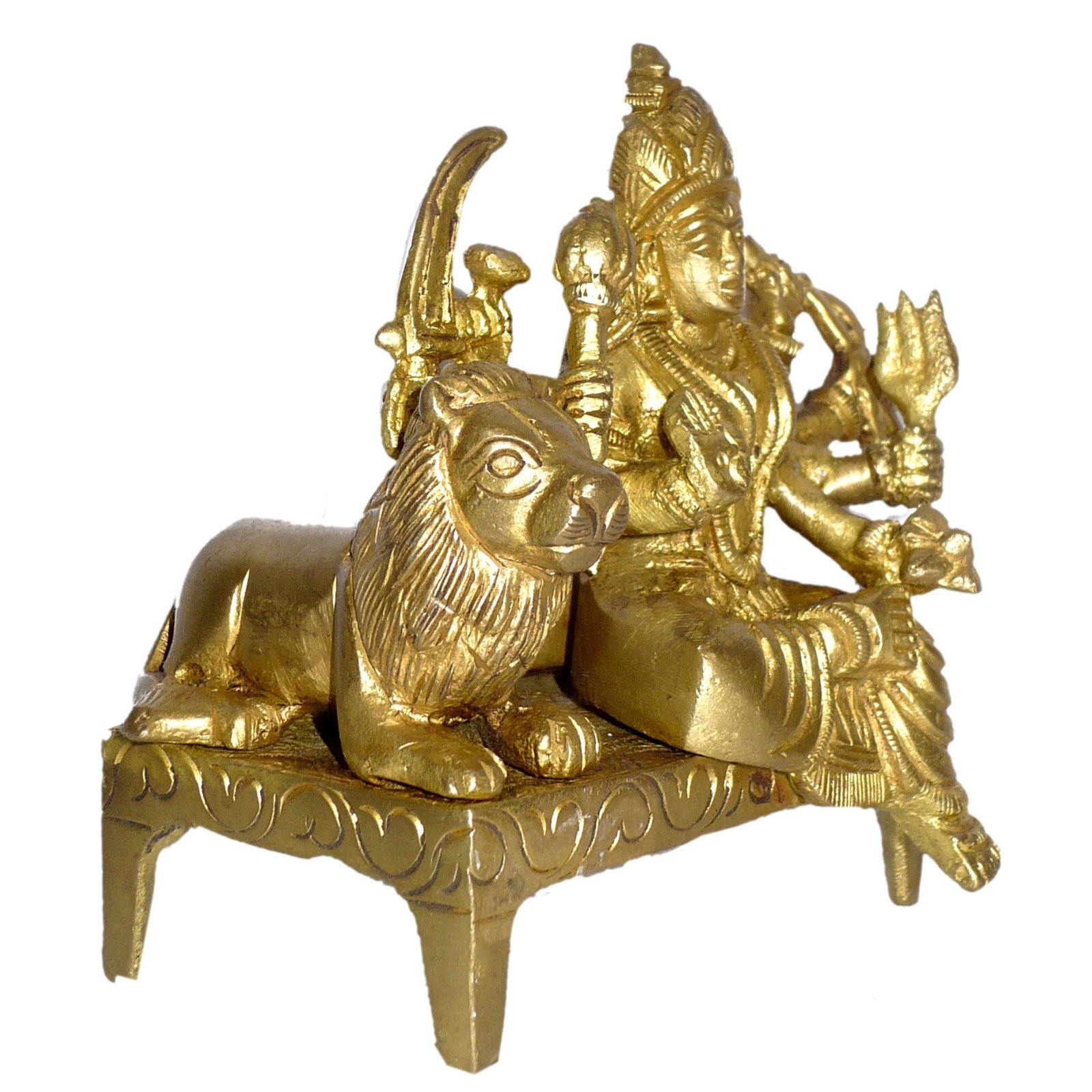 - Brass Ambe Maa Murti on Base Statue For Home Temple Navratri Diwali Special Shri Vaishno Devi Sherawali Mata Idol Durga Mata for Pooja Decoration Carving Work HANDICRAFT ART BY BHARAT HAAT.