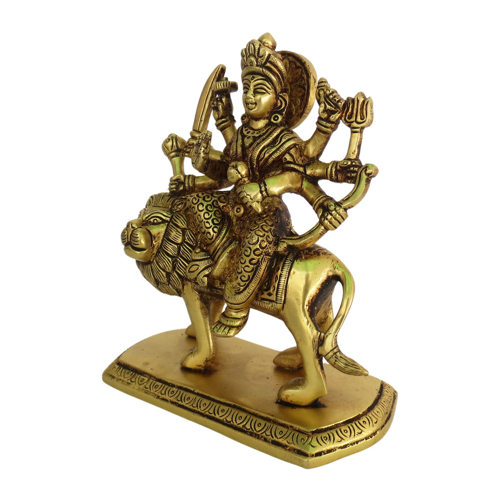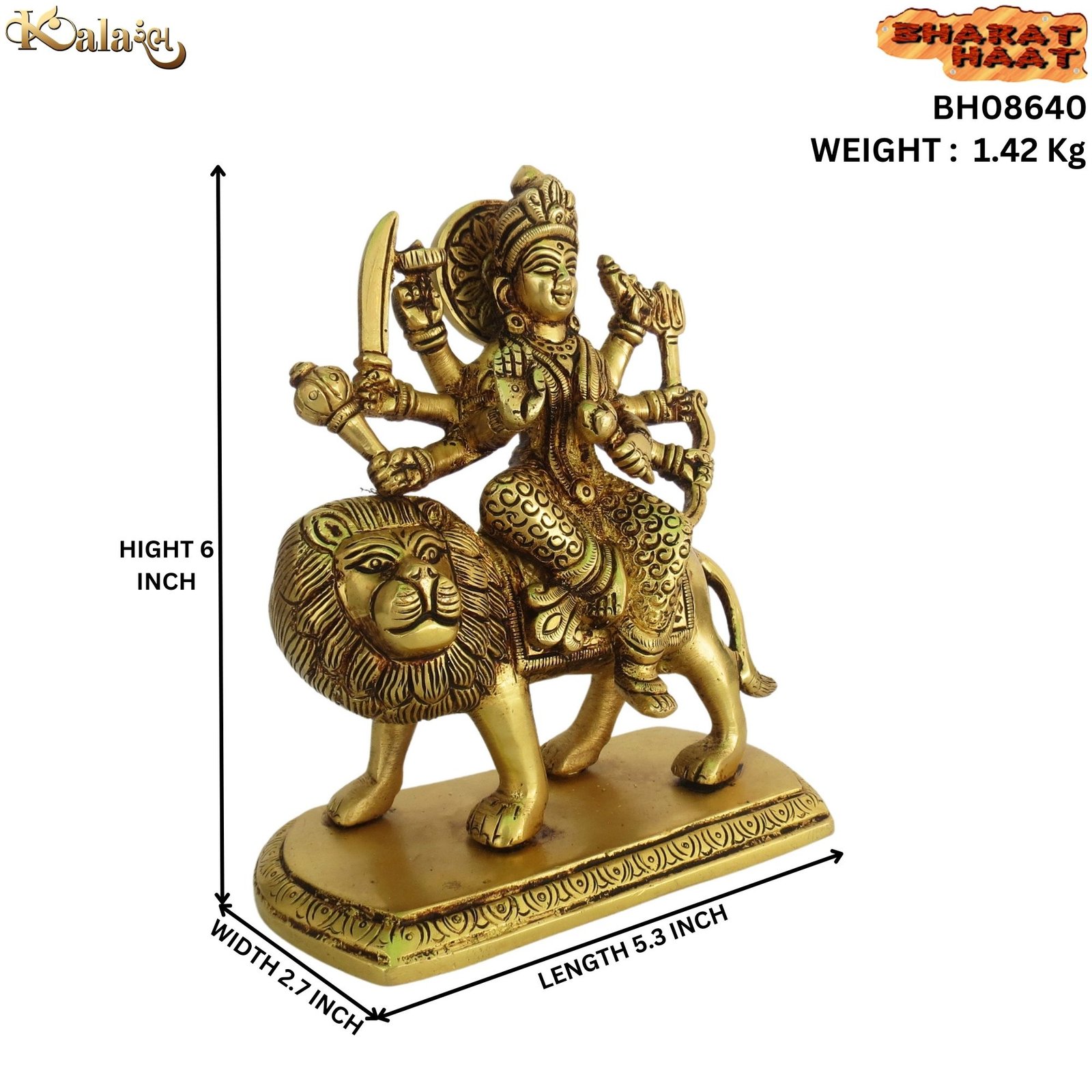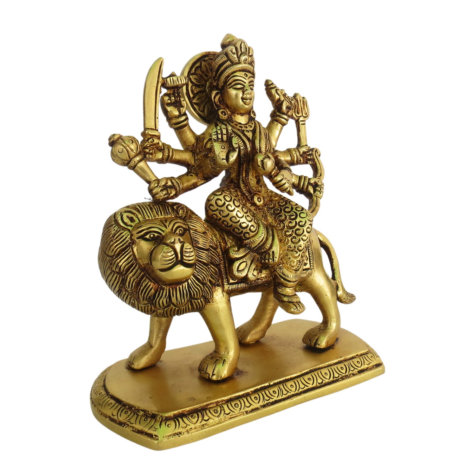 - Brass Ambe Maa Murti on Base Statue For Home Temple Navratri Diwali Special Shri Vaishno Devi Sherawali Mata Idol Durga Mata for Pooja Decoration Carving Work HANDICRAFT ART BY BHARAT HAAT.
