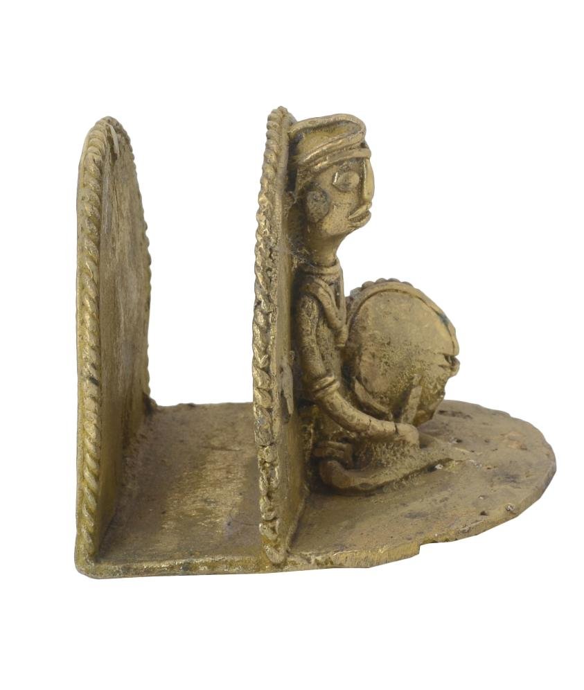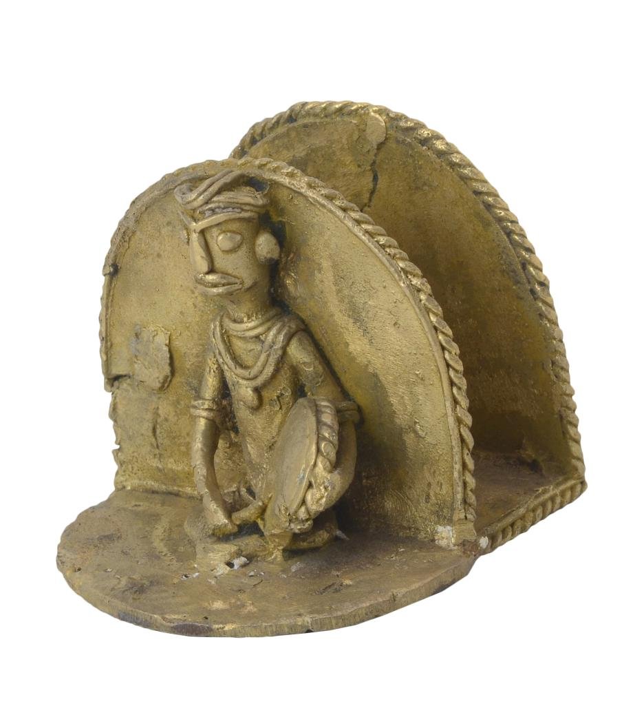 Keywords: brass card holder, handcrafted brass card holder, decorative brass business card holder, unique brass card stand, tribal design card holder.