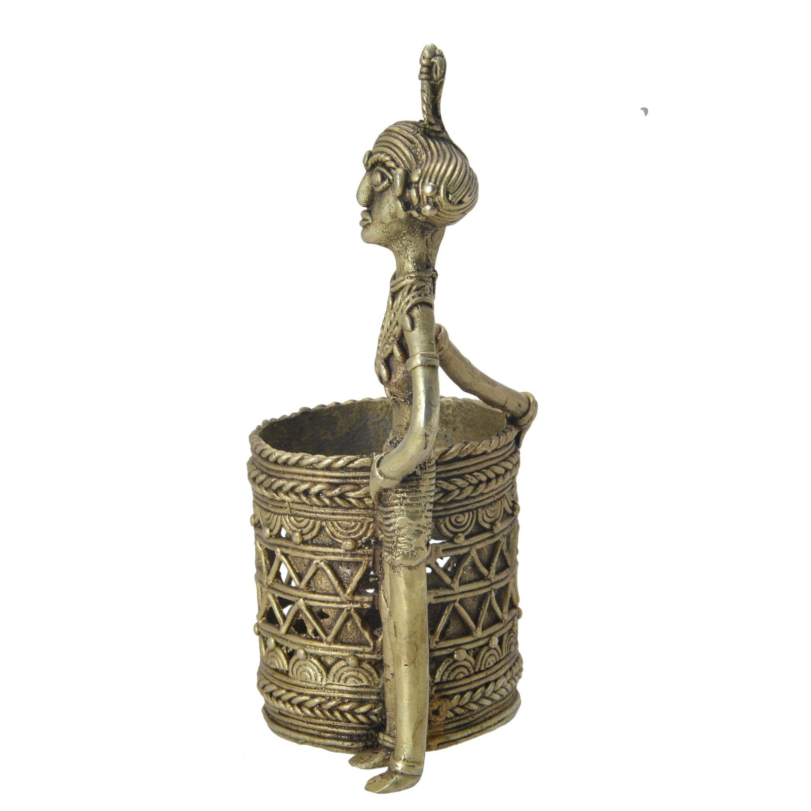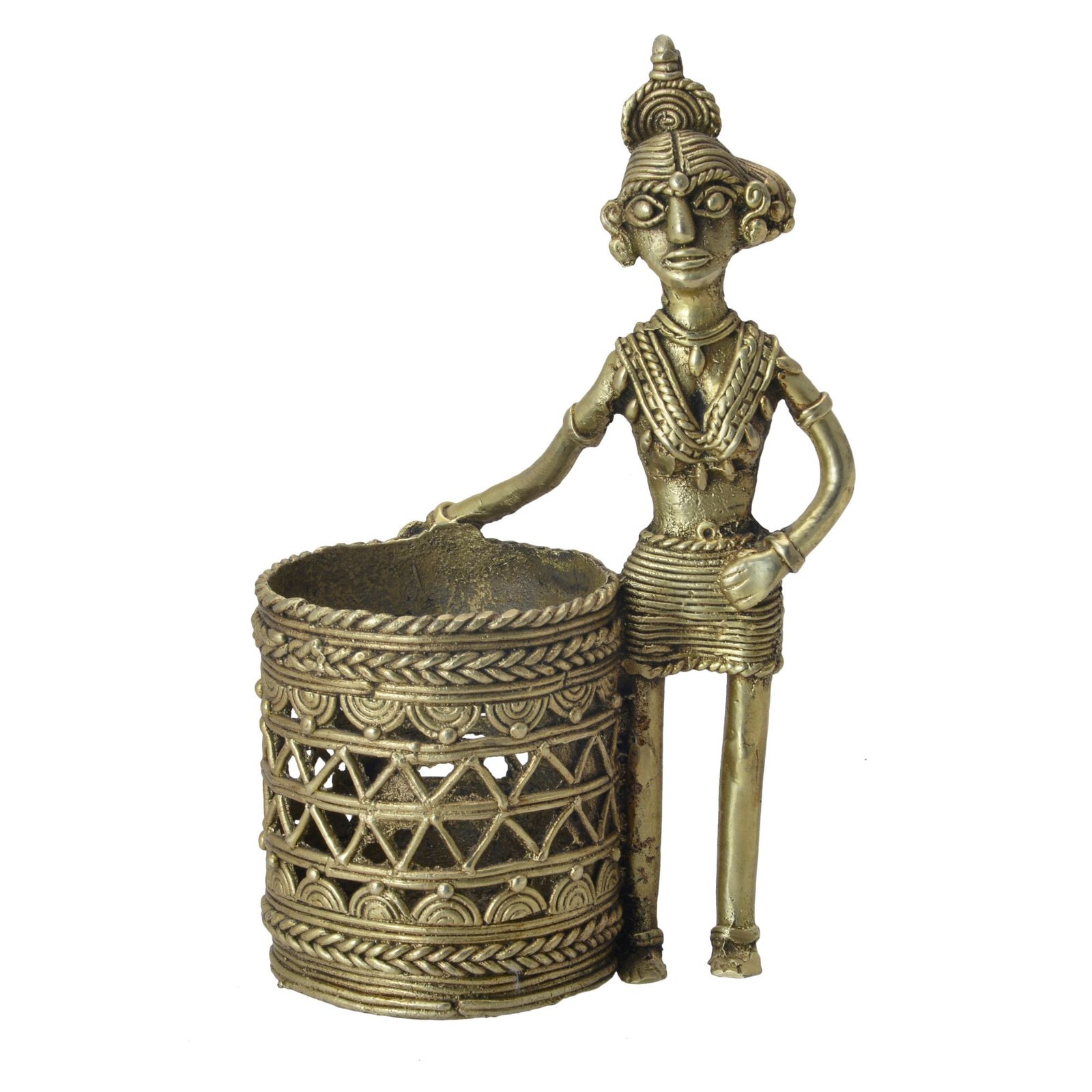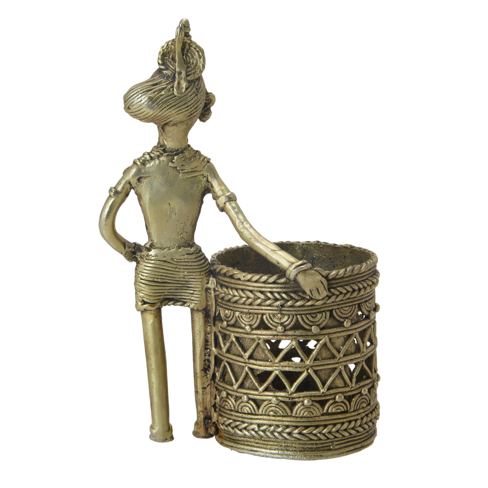 Baster Tribal Dhokra Art Brass Lady Pen Stand Handicrafts Product by BHARAT HAAT