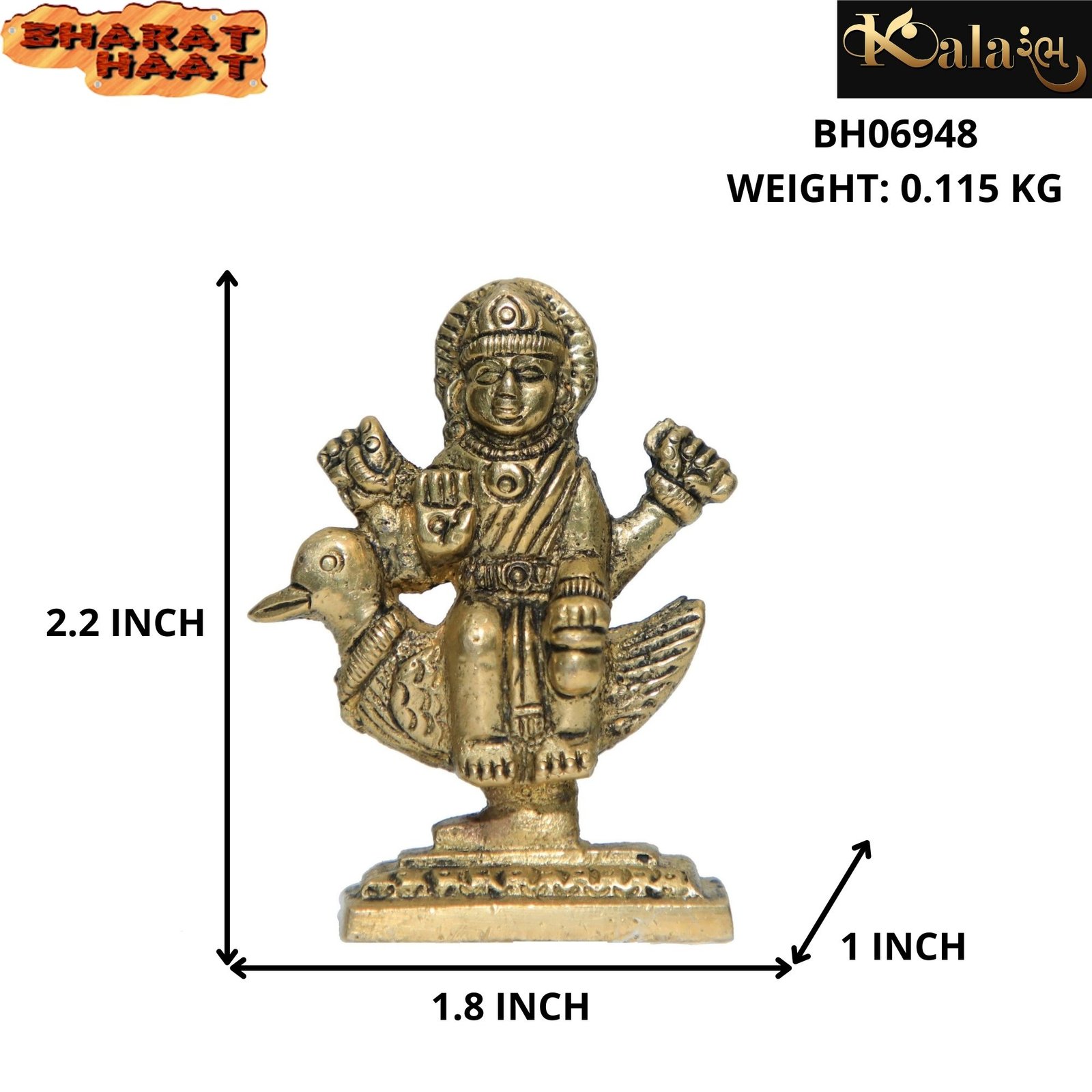 - Brass Metal Brass Bharmani Maa Sitting on Hans.Ideal for Keeping in Home and for Decoration and for gifting to households during Festival and Decorating Purpose and can also be given as souvenir.