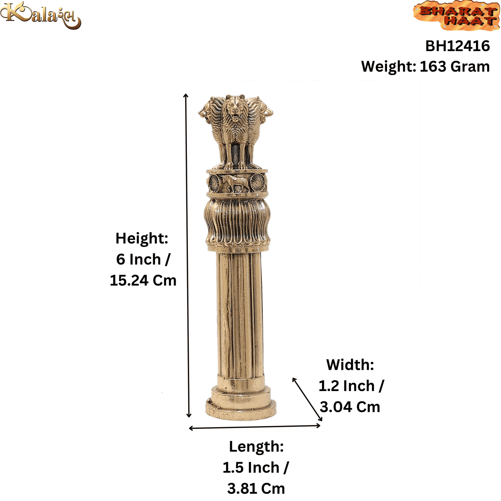 Brass Ashoka Stambh Idol 6 Inch – National Emblem Lion Capital Statue for Home & Office Decor