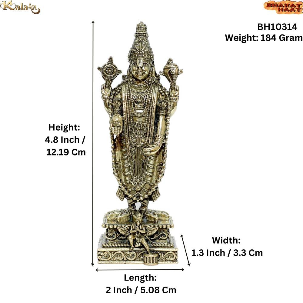 Embrace the divine blessings of Lord Venkateswara with this exquisitely crafted Brass Balaji Idol. With dimensions of 2 x 1.3 x 4.8 inches (5.08 x 3.3 x 12.19 cm) and a weight of 184 grams, this beautiful statue is a perfect representation of Lord Venkateswara, also known as Tirupati Balaji or Lord Srinivasa.