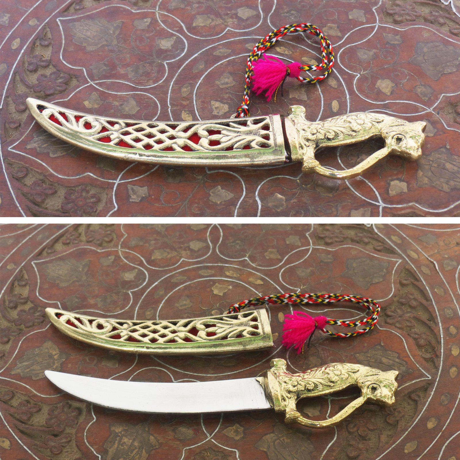Brass Body Kattaar Showpiece Stainless Steel Knife Without Sharpness Kattaar for Wedding Dulha 6.5″ Inch