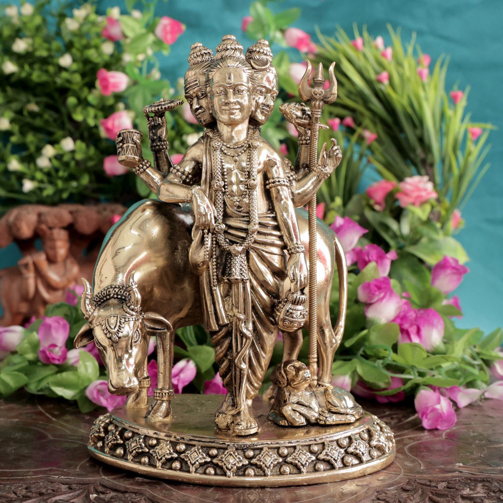 This Brass Dattatreya murti also makes a meaningful spiritual and religious gift for devotees, housewarming ceremonies, and festive celebrations. Durable and easy to maintain, the natural brass finish ensures long-lasting beauty and timeless appeal.