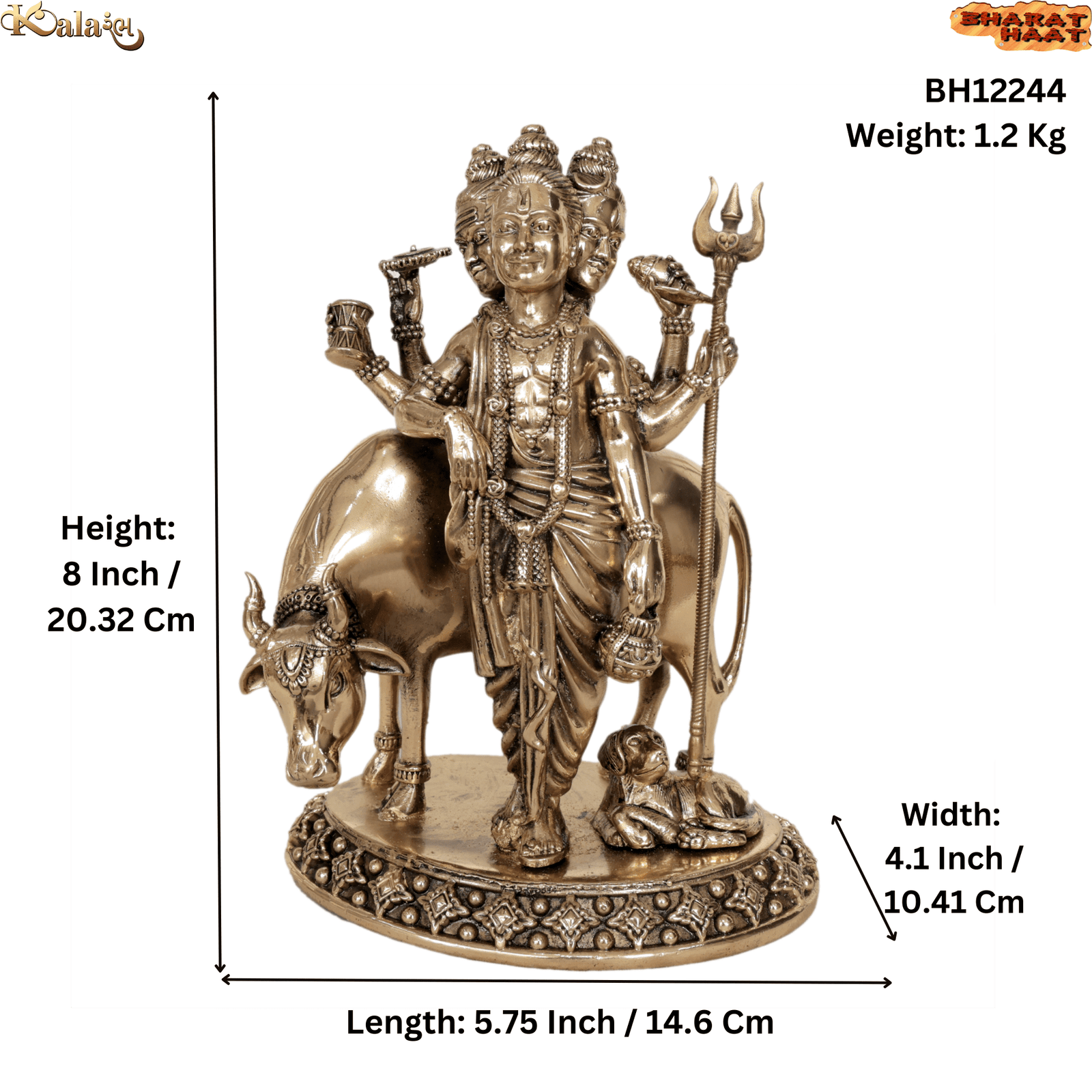 Crafted from high-quality solid brass, this idol showcases fine detailing and traditional craftsmanship, reflecting deep spiritual significance. Its larger size and solid weight of 1.2 Kg give it a commanding and sacred presence, making it ideal for home mandirs, temples, meditation halls, and spiritual centers.