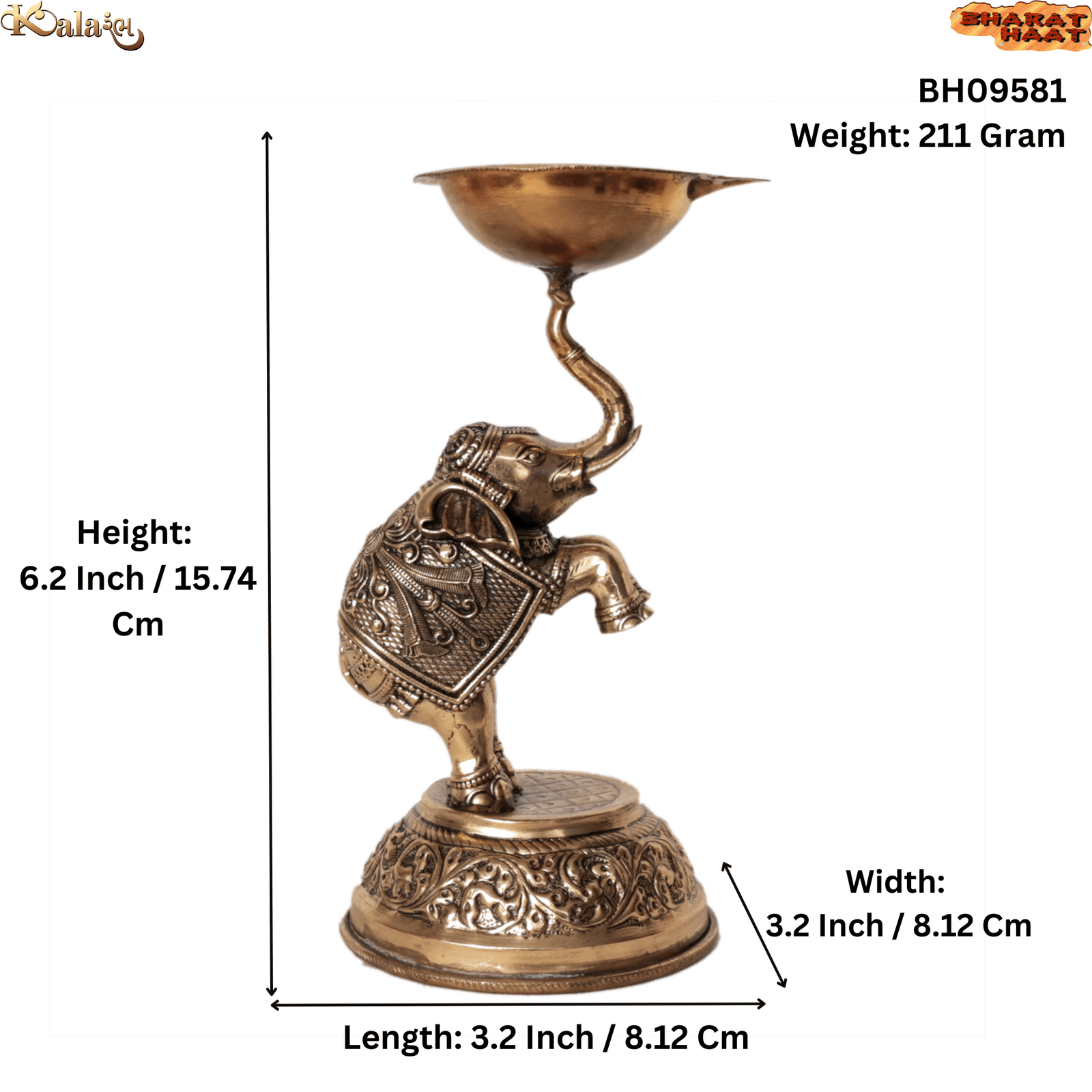 This Brass Elephant Diya is not just a lamp—it is a symbol of light, prosperity, strength, and auspicious beginnings, bringing warmth and positive vibrations into your sacred space.