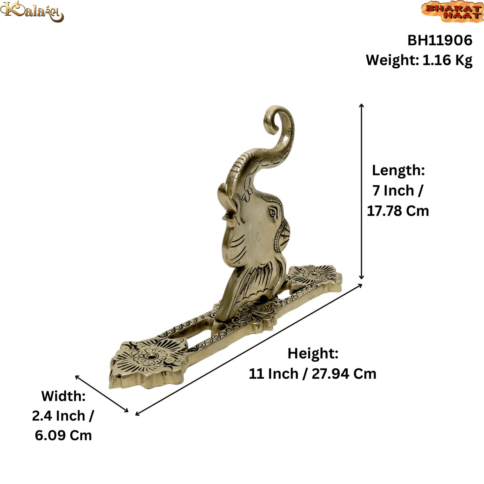 Made from high-quality brass, this wall hanging showcases intricate detailing on the elephant design and frame, with a polished antique finish that enhances its aesthetic appeal. Measuring 7 x 2.4 x 11 Inch (17.78 x 6.09 x 27.94 cm), it is lightweight yet durable, weighing 1.16 kg making it easy to mount anywhere in your home or office.