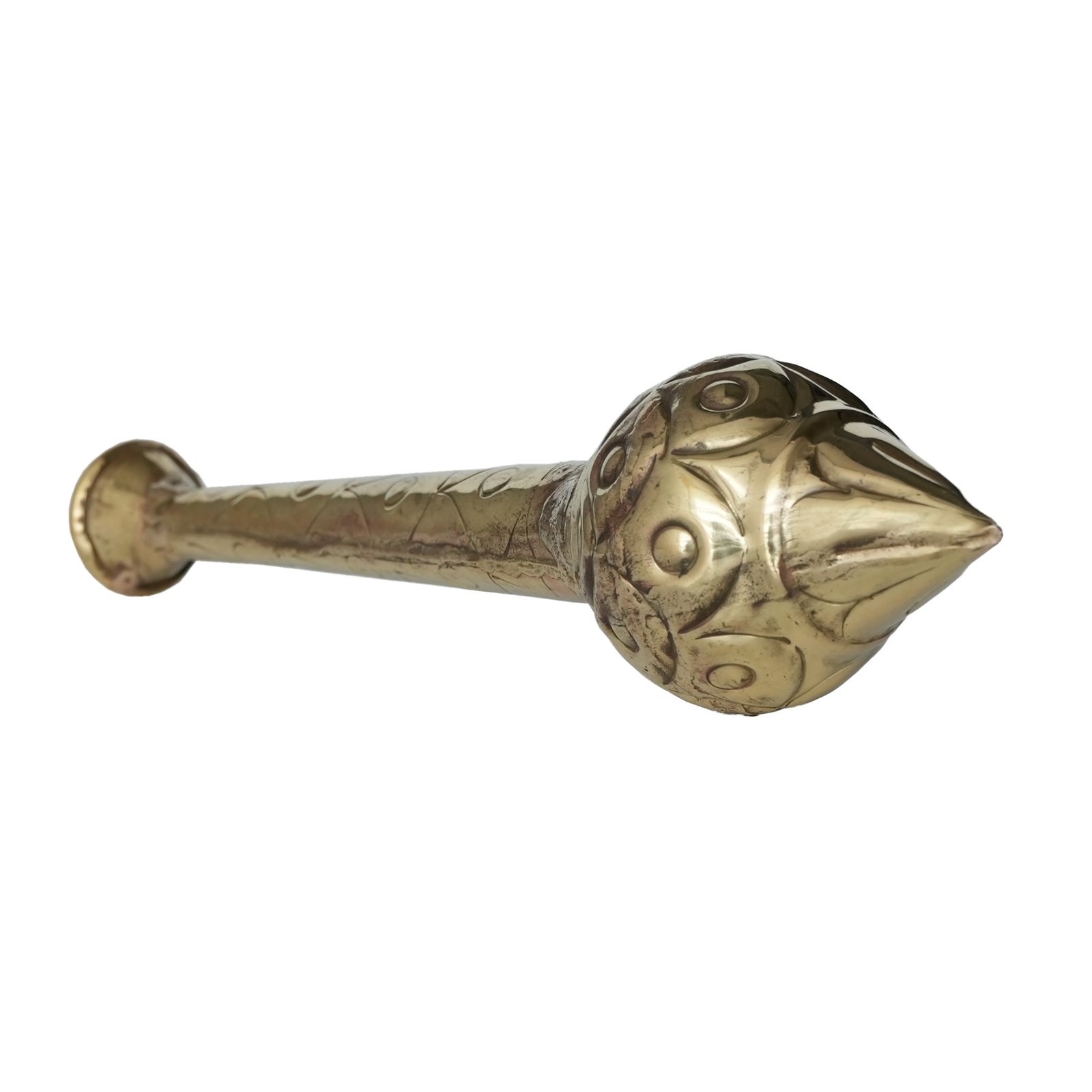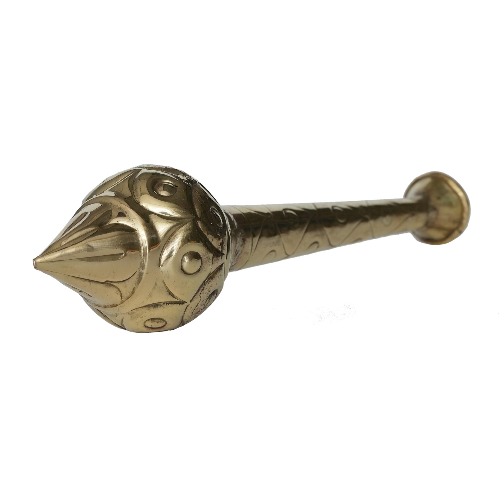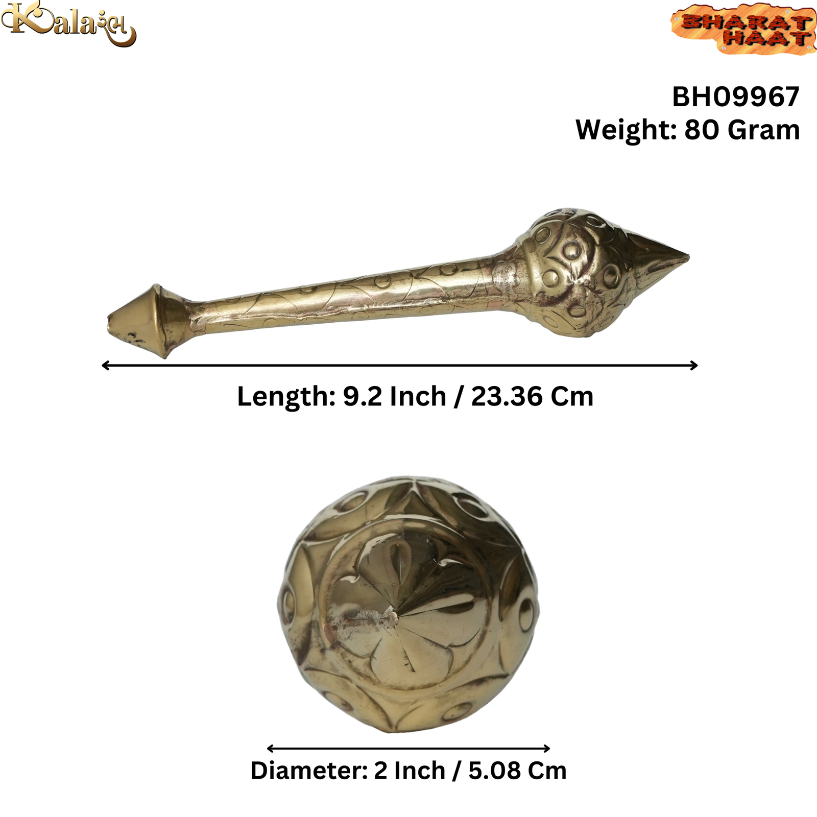 Crafted with meticulous attention to detail, this Brass Gada Weapon captures the essence of an iconic ancient Indian club. With dimensions of 2 x 1 x 9.2 inches (or 5.08 x 2.54 x 23.36 cm) and weighing 80 grams, it stands as a testament to the rich cultural heritage and martial prowess of ancient India.