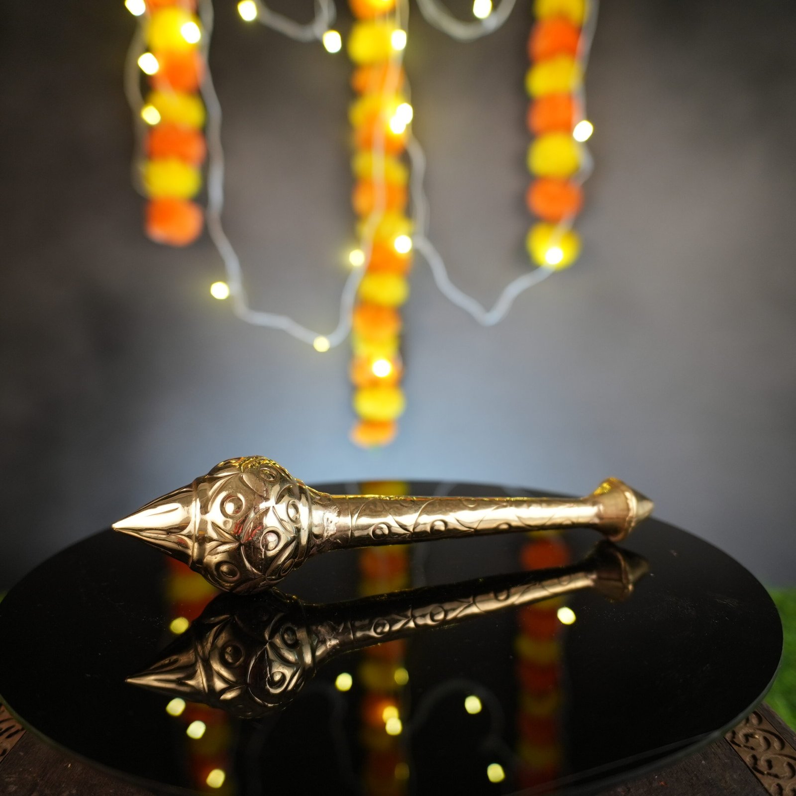 Dive into the realm of ancient Indian heritage with our magnificent Brass Gada Sculpture, a symbolic representation of strength and valor!