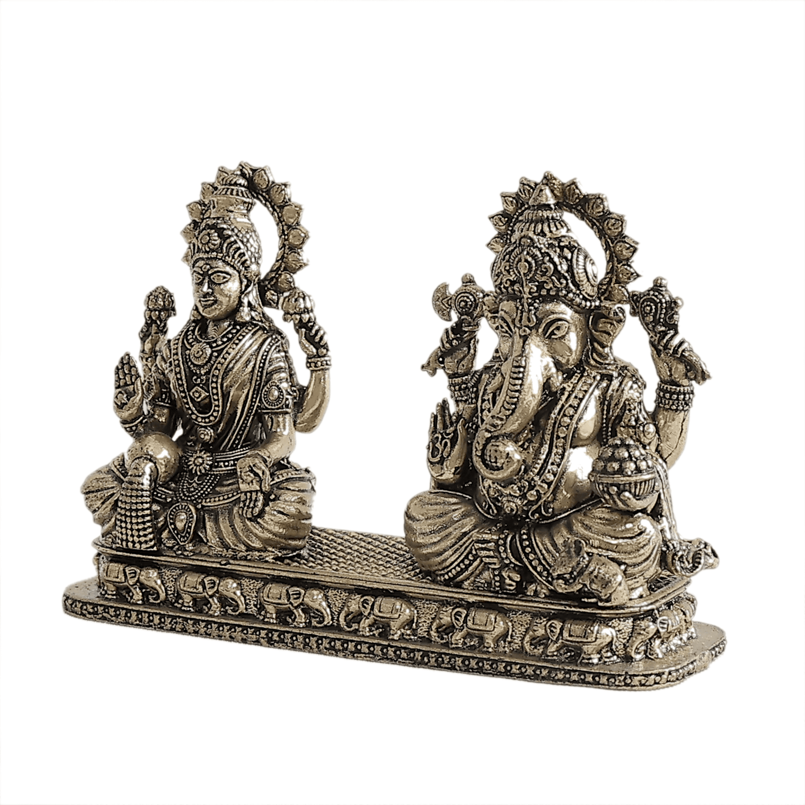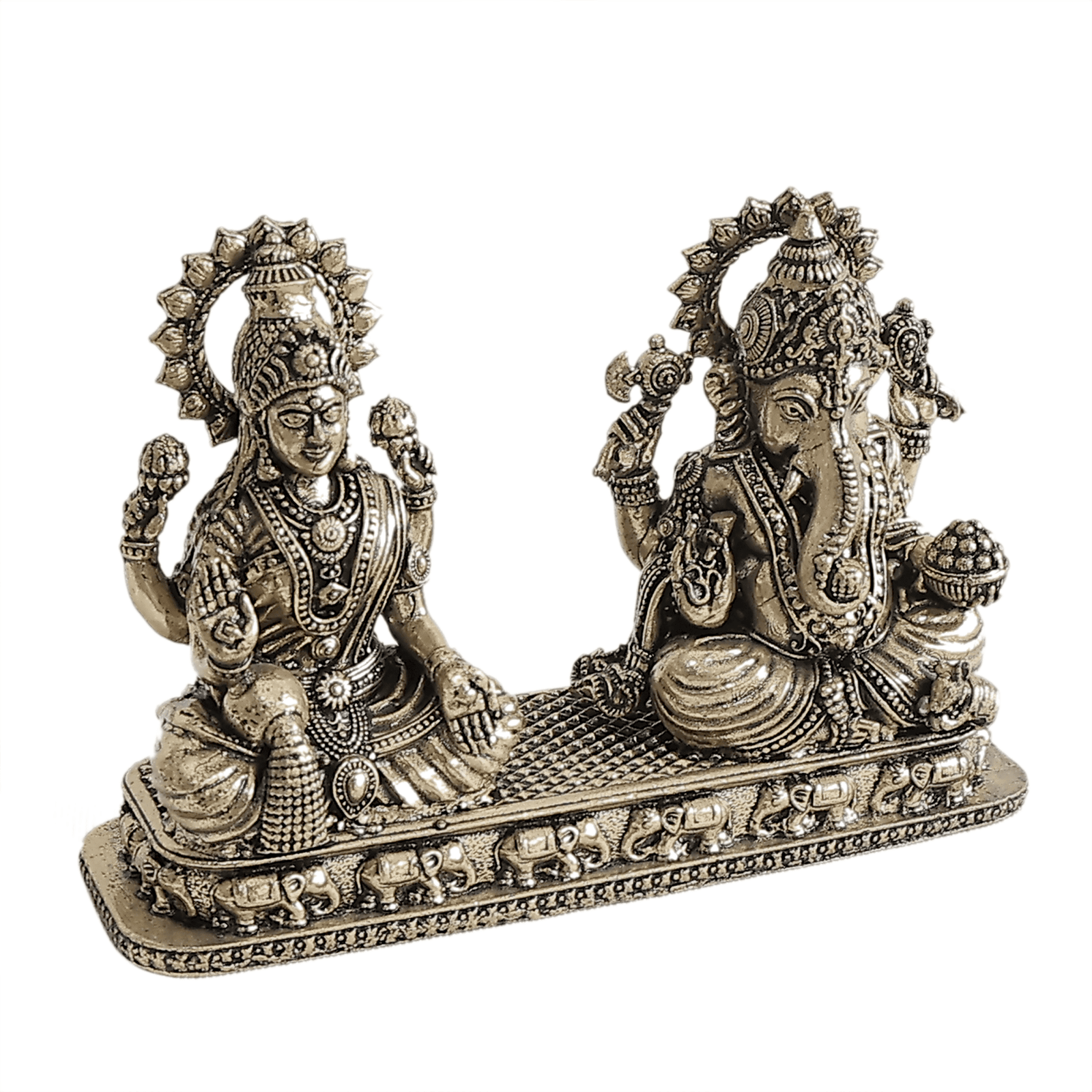 BRASS G&L IDOL | PREMIUM HANDCRAFTED BRASS GANESHA & LAKSHMI STATUE FOR HOME & POOJA DECOR (2.7 INCH, 178 GRAM)