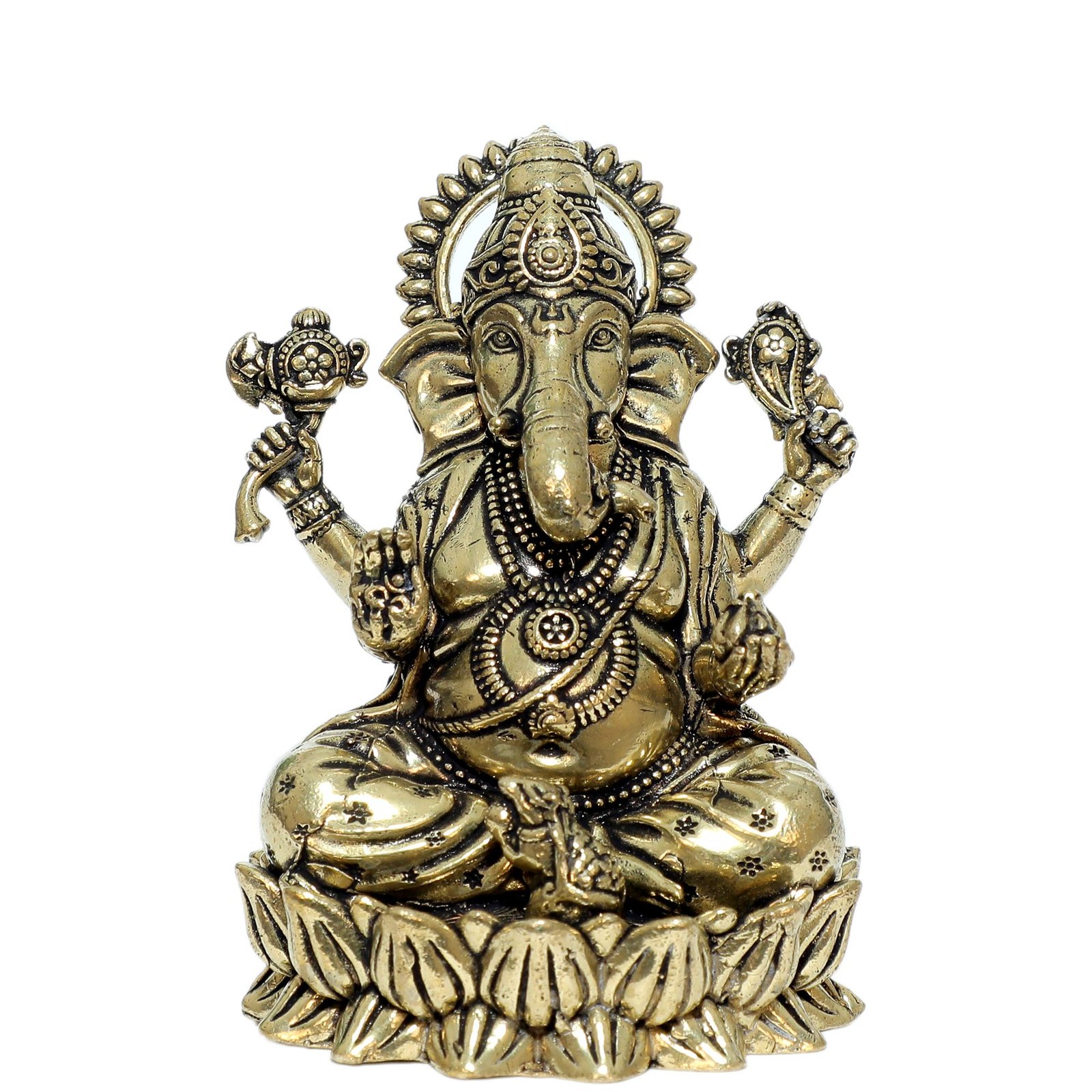 Made from solid brass, the idol is durable, long-lasting, and designed with a polished antique finish. Its small size makes it ideal for car dashboards, office desks, home temples, study tables, wallets, gifting hampers, and travel-use pooja kits. Lord Ganesha is widely worshipped as the remover of obstacles and the bringer of success and good fortune—making this miniature idol a meaningful spiritual accessory.