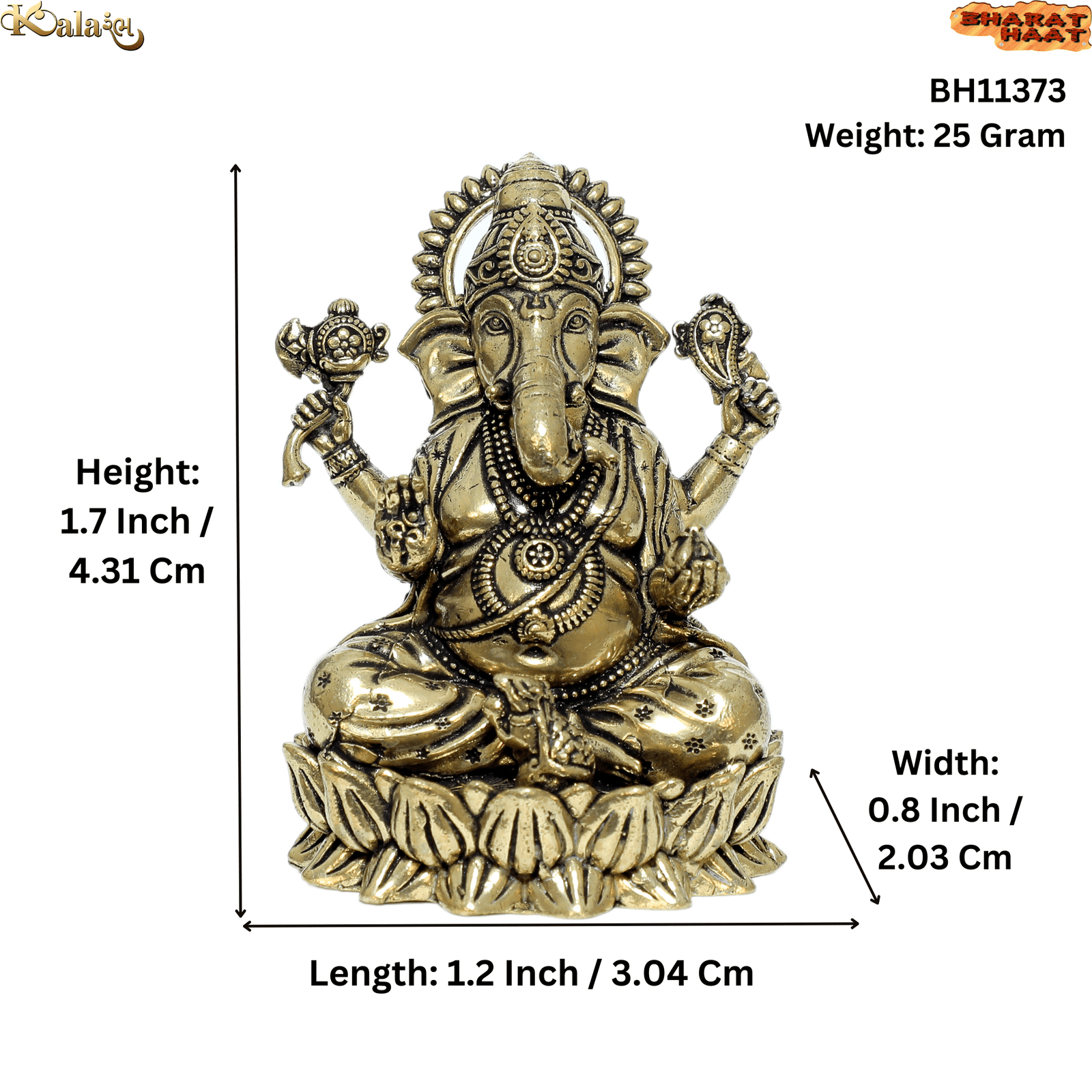 Brass Ganesha Idol (Mini) | 1.2 x 0.8 x 1.7 Inch | 25g