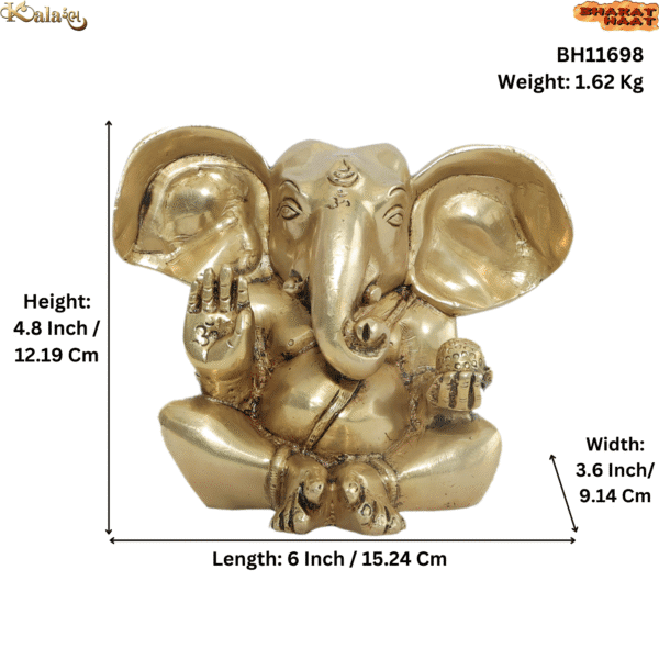 Brass Ganesha Idol – 4.8” Hindu Elephant God Statue, Pooja & Home Décor