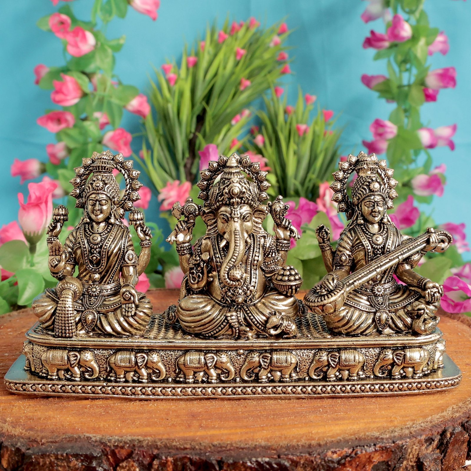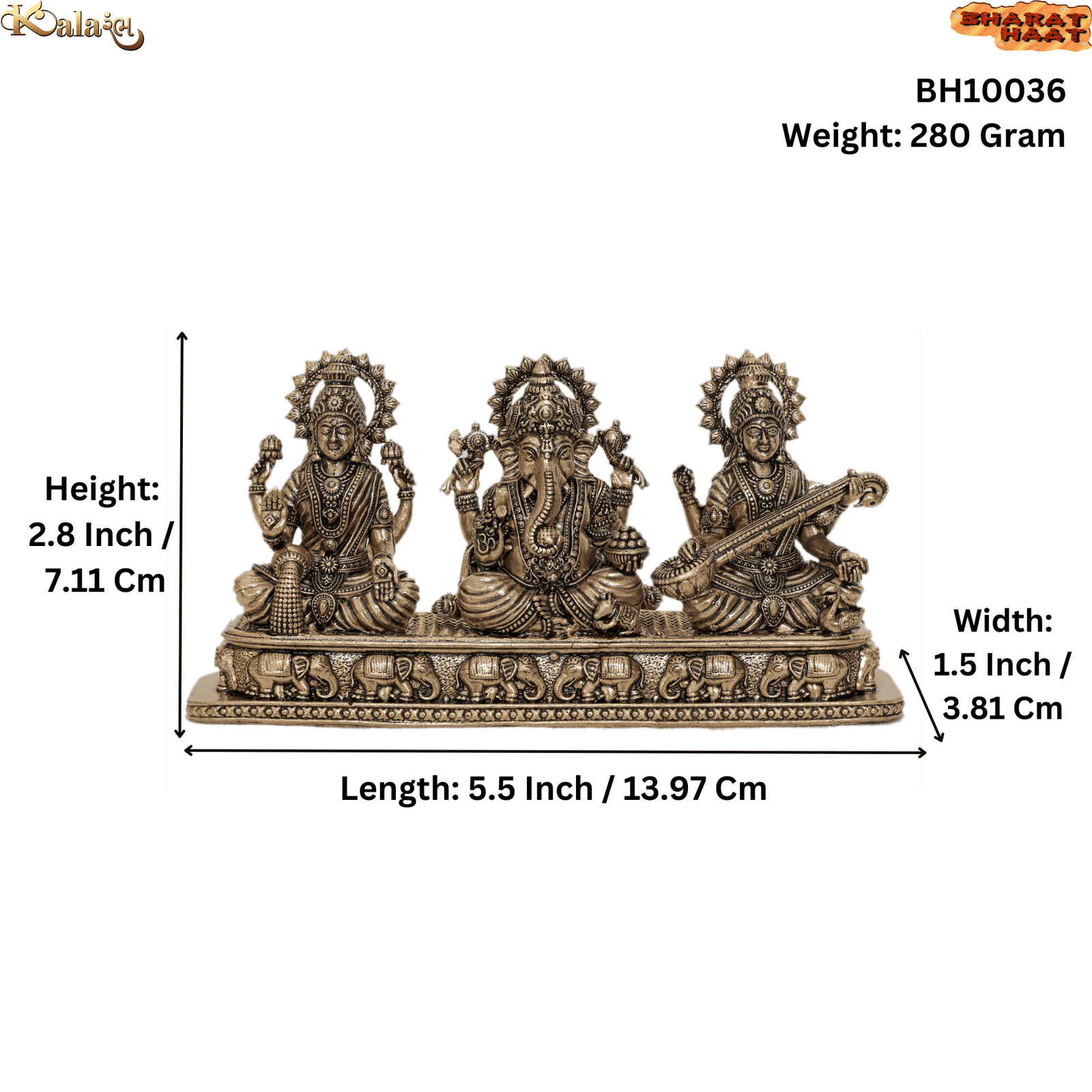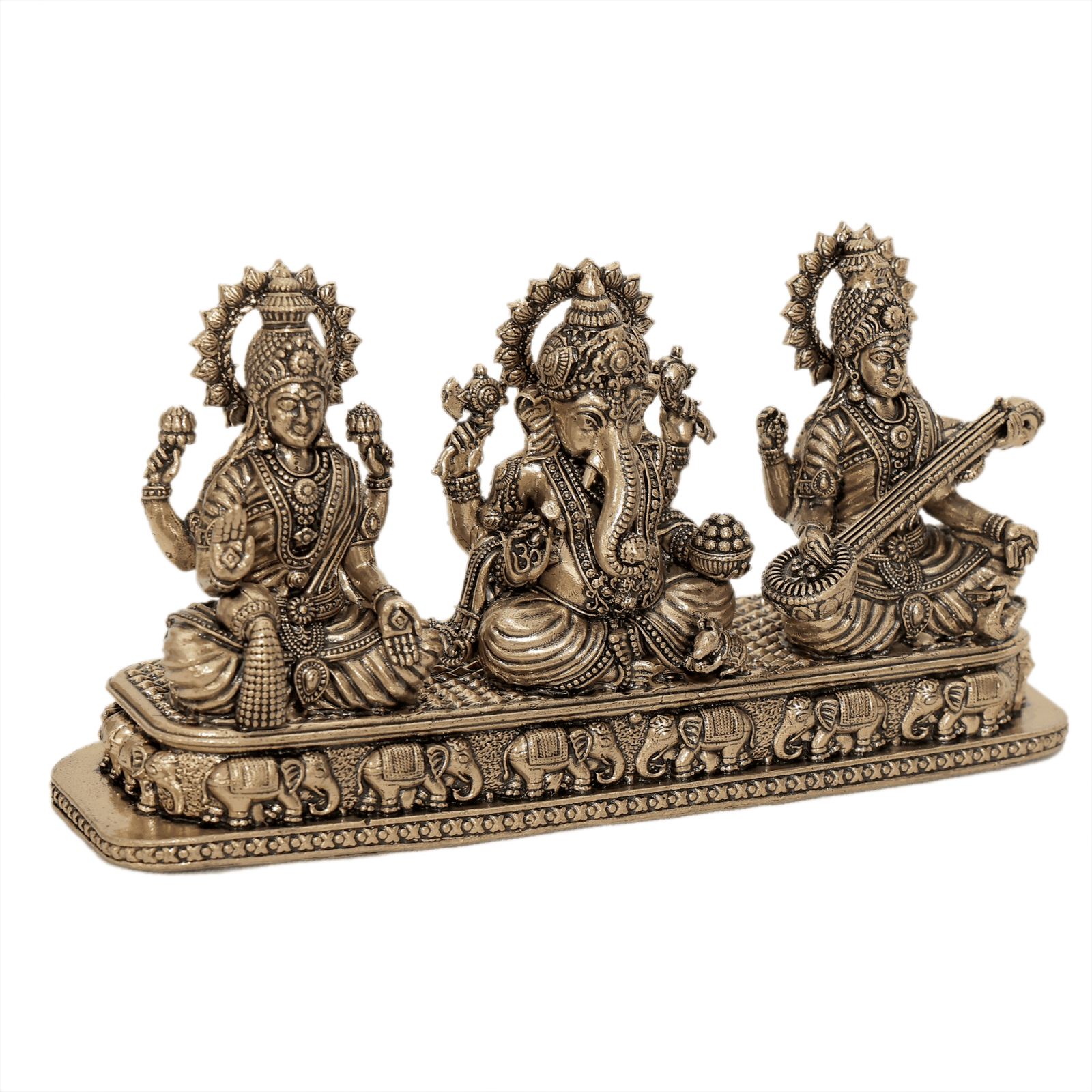 Brass Ganesha Lakshmi Saraswati Idol (G·L·S) – Auspicious Trio Murti for Pooja & Home Décor
