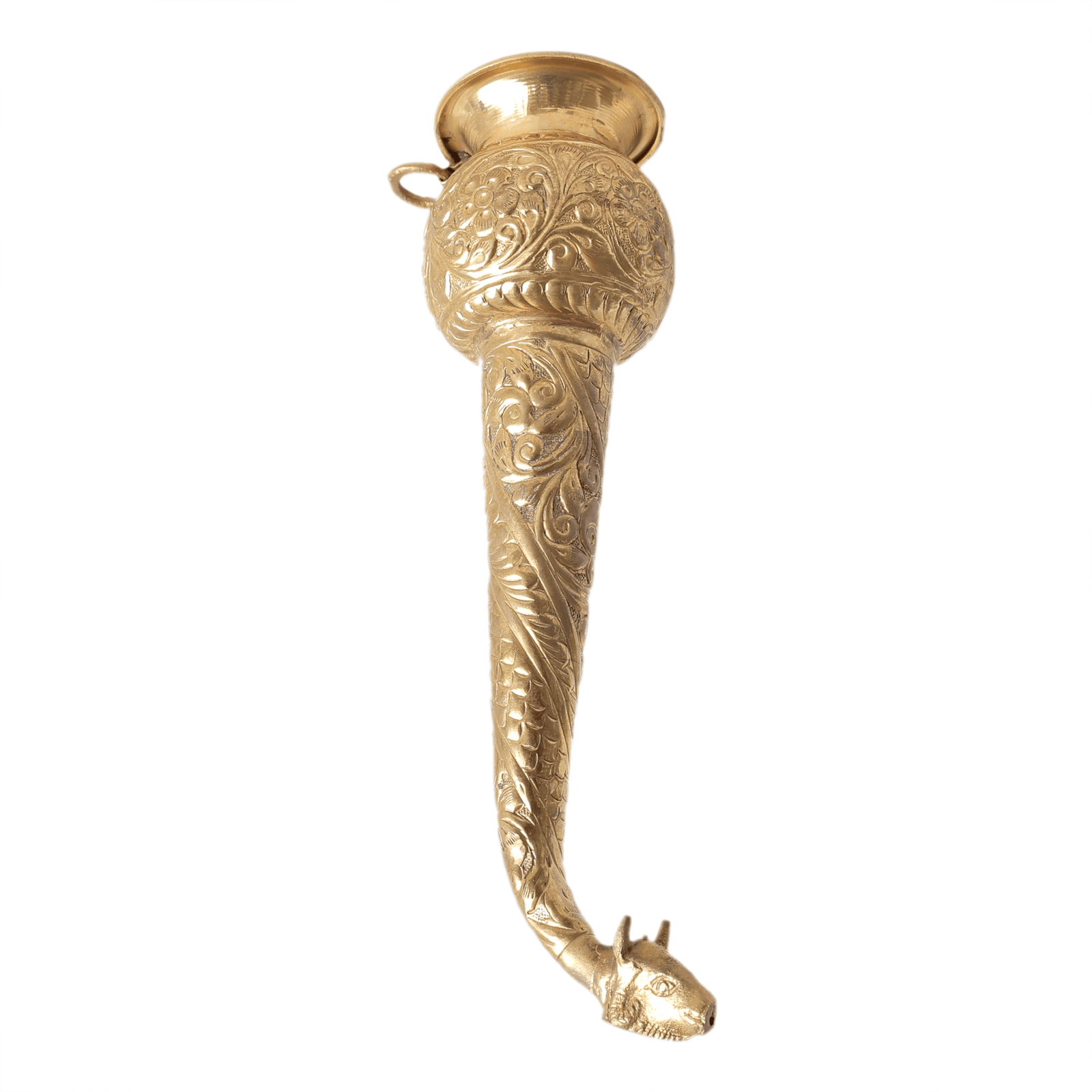 This Brass Gaumukhi Shringi Pot is a wonderful addition to home temples, religious ceremonies, spiritual décor setups, and also makes a thoughtful gift for housewarmings, weddings, and festivals.