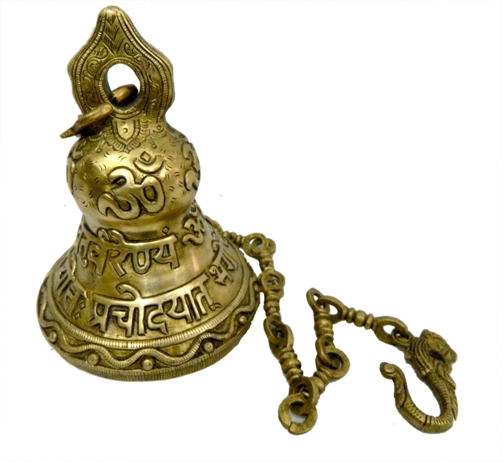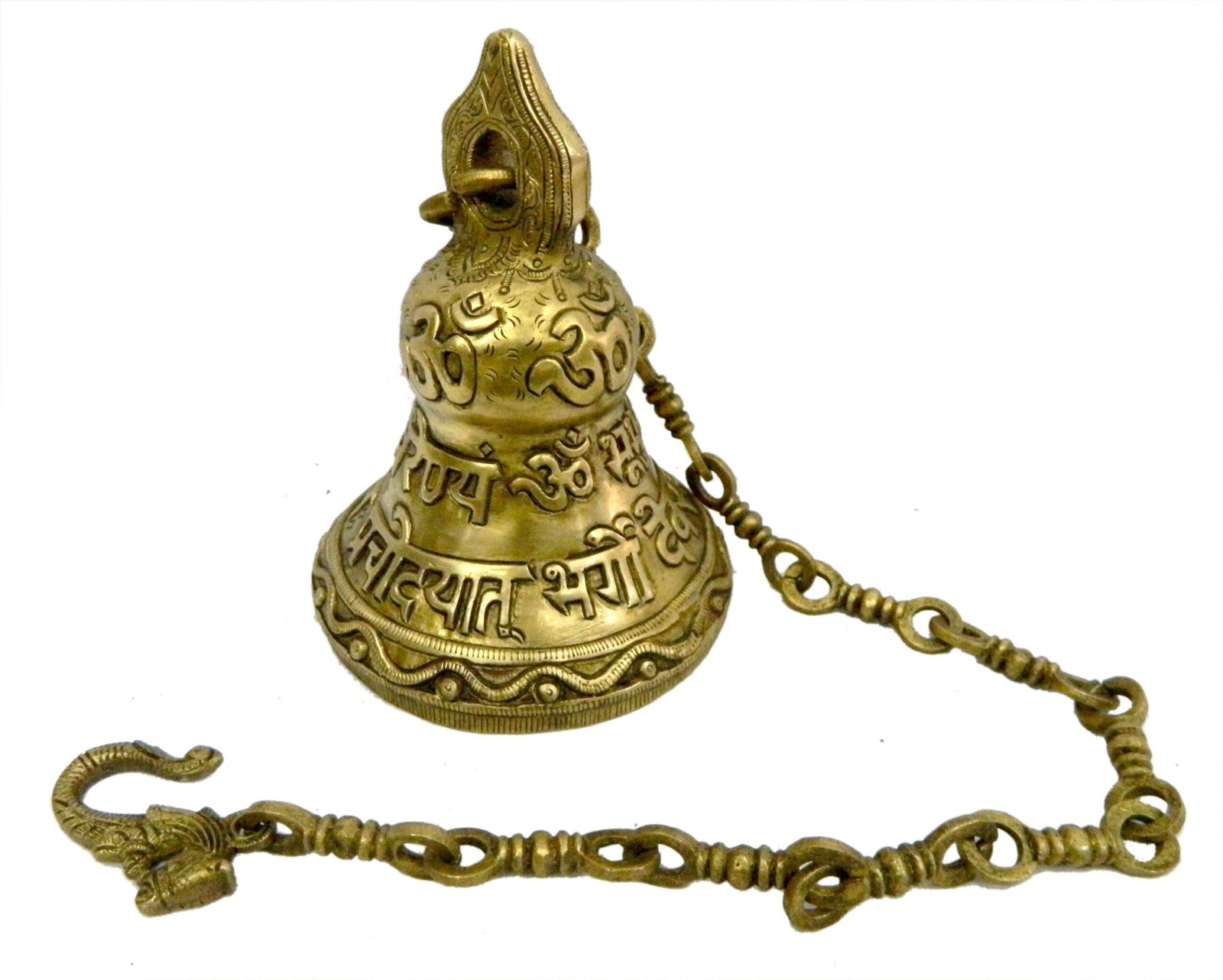 Keywords: brass mantra bell, Gayatri mantra prayer bell, spiritual bell, chanting bell, devotional brass bell, Gayatri mantra decor.