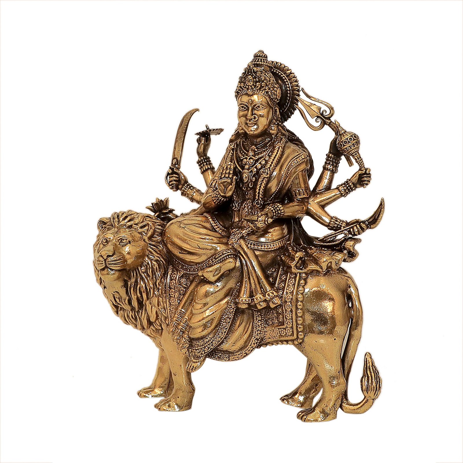 Brass Ambe Maa Idol – Divine Sculpture of Goddess Durga for Worship & Home Décor