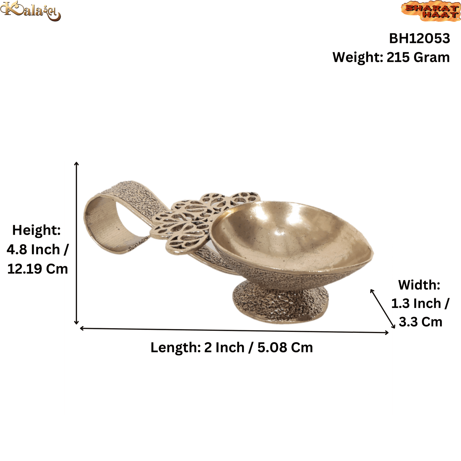 Crafted from premium-quality solid brass, this hand diya features fine traditional detailing with a smooth antique finish. The ergonomic hand-held design makes it easy and safe to use during aarti rituals, allowing a steady grip while lighting the diya with oil or ghee.