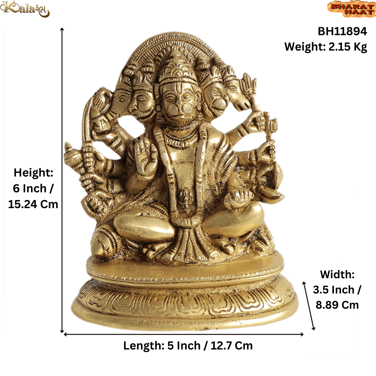 Crafted from high-quality brass, the idol features fine detailing, including facial expressions, ornaments, and posture, with an antique finish that adds a traditional and timeless charm. Measuring 5 x 3.5 x 6 Inch (12.7 x 8.89 x 15.24 cm) and weighing 2.15 Kg it is solid, durable, and easy to place on any altar or decorative shelf.