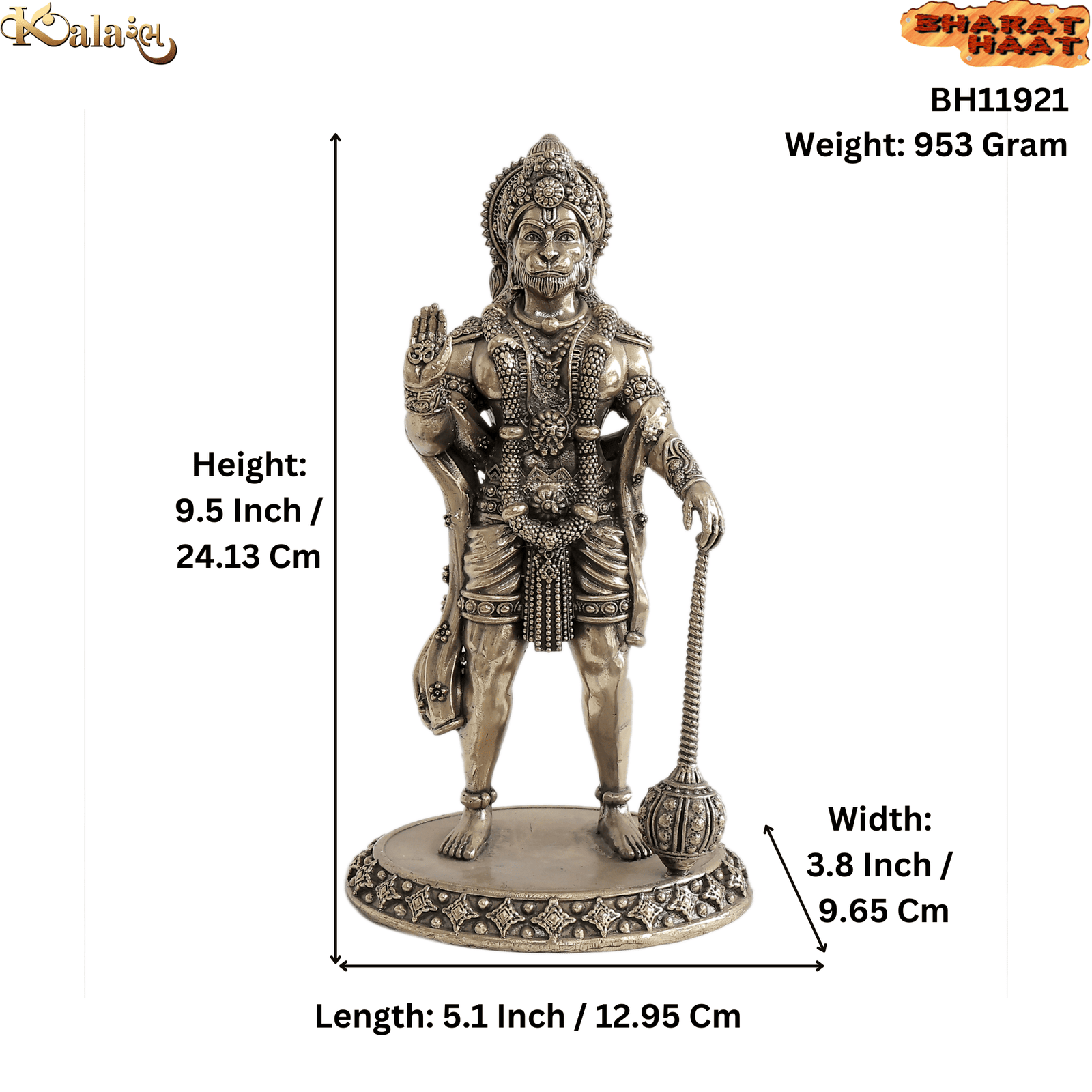 BRASS HANUMAN STATUE | PREMIUM HANDCRAFTED BAJRANGBALI IDOL FOR HOME & POOJA DECOR (9.5 INCH, 953 GRAM)
