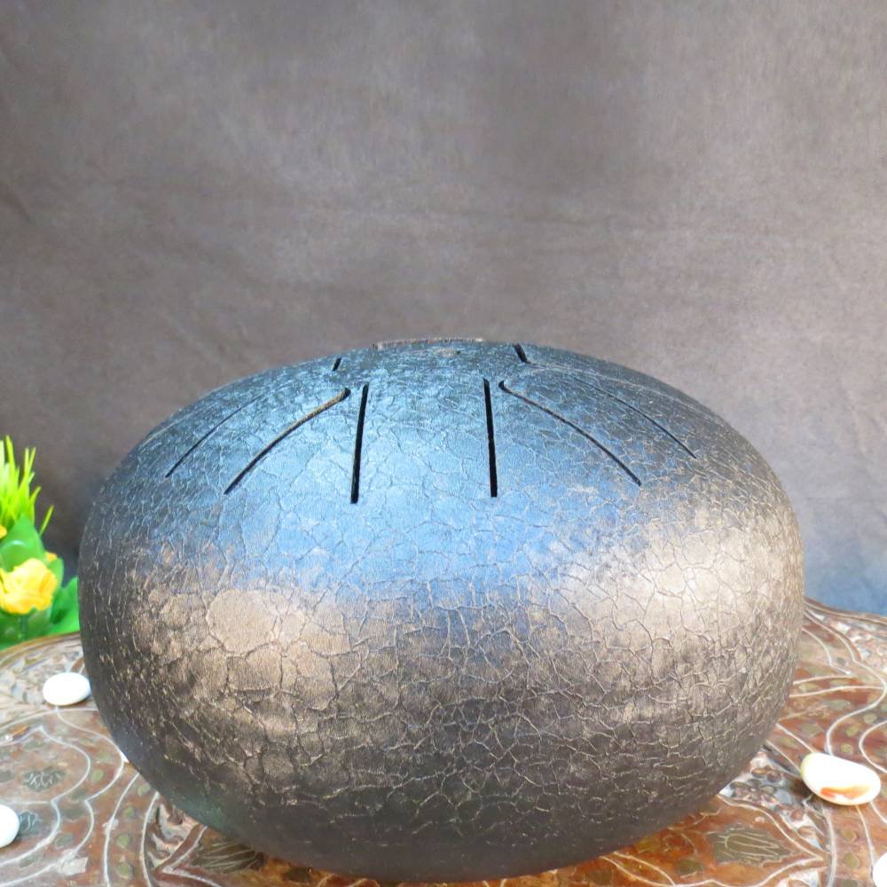Keywords: black, brass handpan drum, brass tongue drum, black meditation drum, brass steel drum, black brass drum.