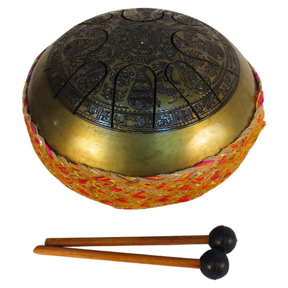 This brass tongue drum is not just an instrument but a work of art. The detailed carvings on its surface make it a decorative piece, while its deep, soothing tones create an immersive sound experience. Ideal for meditation, relaxation, and creating a tranquil atmosphere, this drum is perfect for both novice players and seasoned musicians.