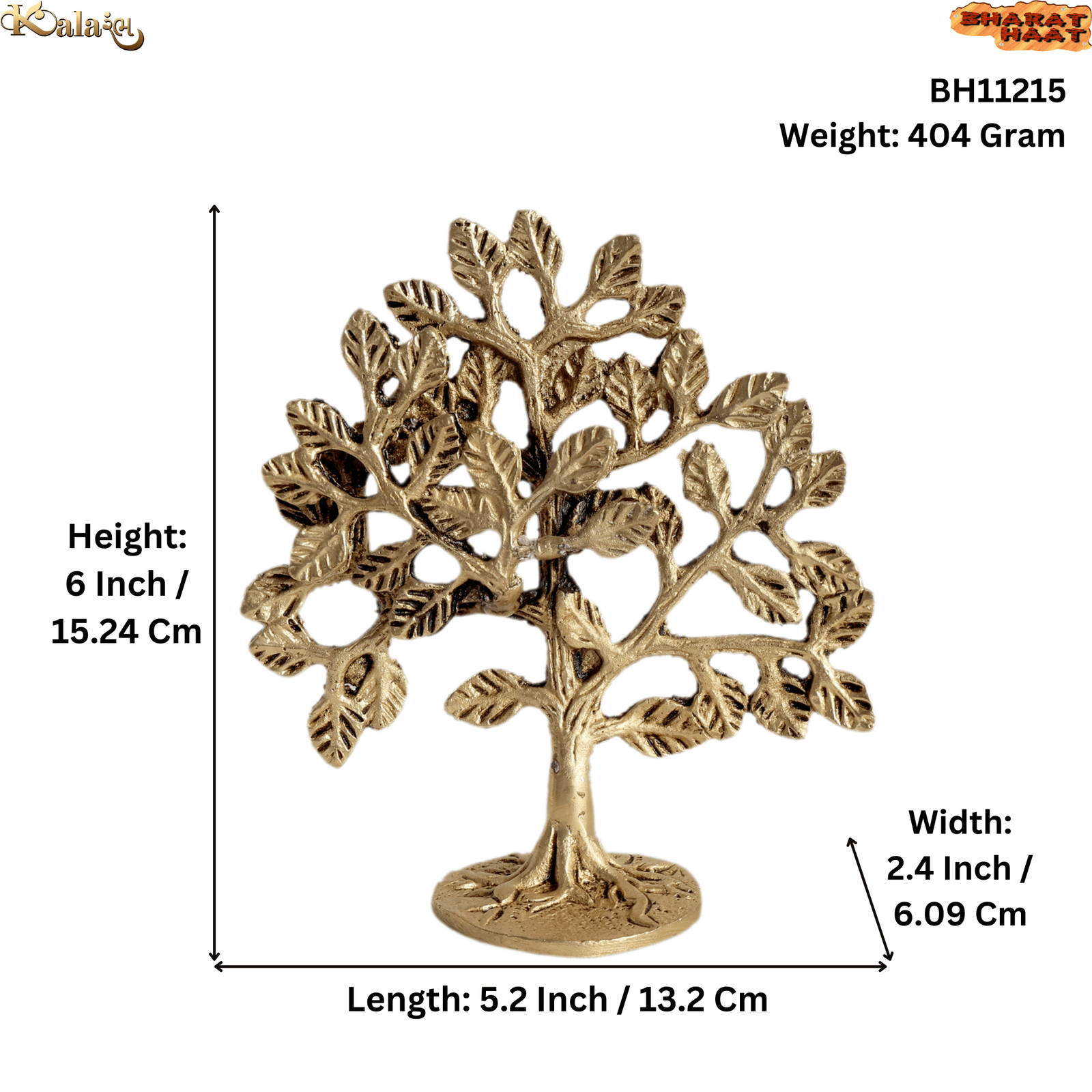 Expertly crafted from pure brass, the tree features detailed branches, leaves, and a sturdy trunk, reflecting traditional artistry. With dimensions of 5.2 x 2.4 x 6 Inch (13.2 x 6.09 x 15.24 cm) and a solid weight of 404 grams, this piece is compact, stable, and ideal for keeping on shelves, study tables, office desks, home temples, or living room décor.