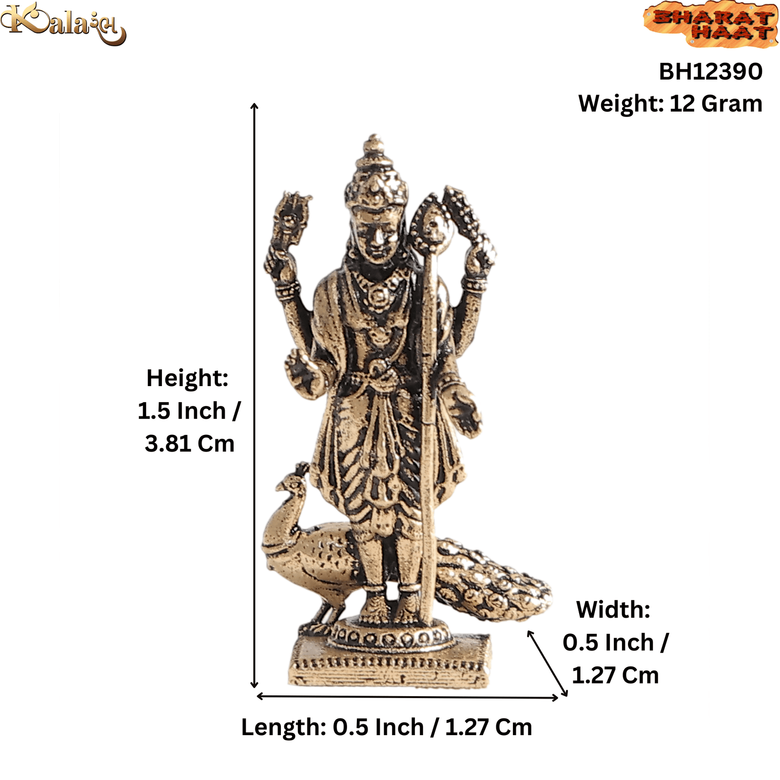 BRASS KARTIKEY (MURUGAN) IDOL 0.5 x 0.5 x 1.5 INCH | MINI LORD SUBRAMANYA STATUE FOR HOME TEMPLE & CAR