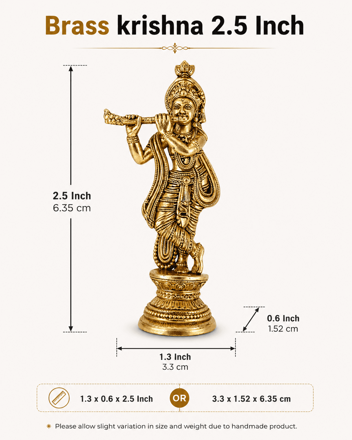 Premium Brass Krishna Statue 2.5 Inch | Handcrafted Lord Krishna Murti | Pooja Idol for Home Temple, Office Decor & Spiritual Gift