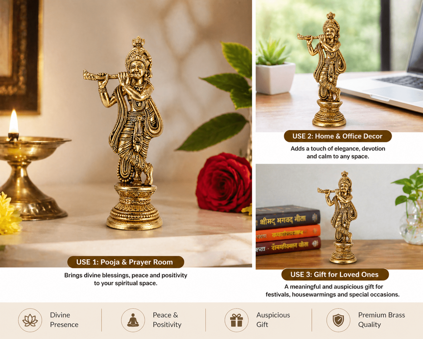 - Enhances home, office & temple decor