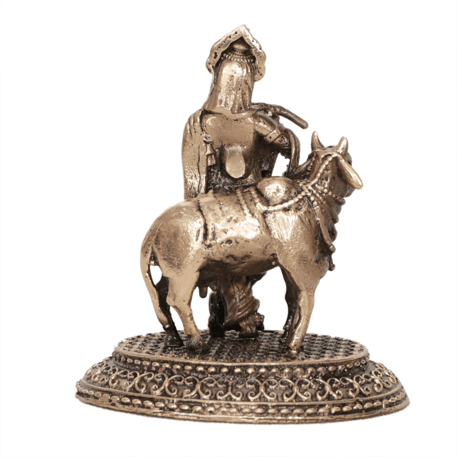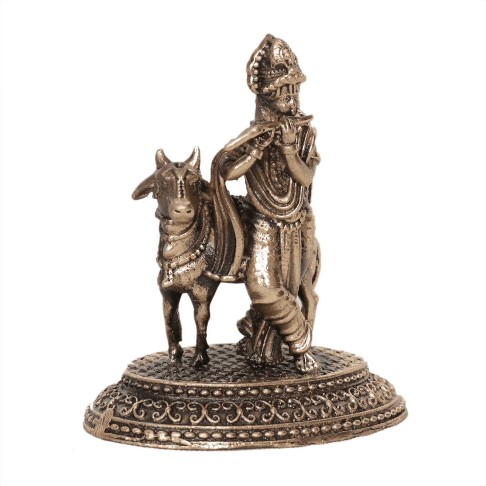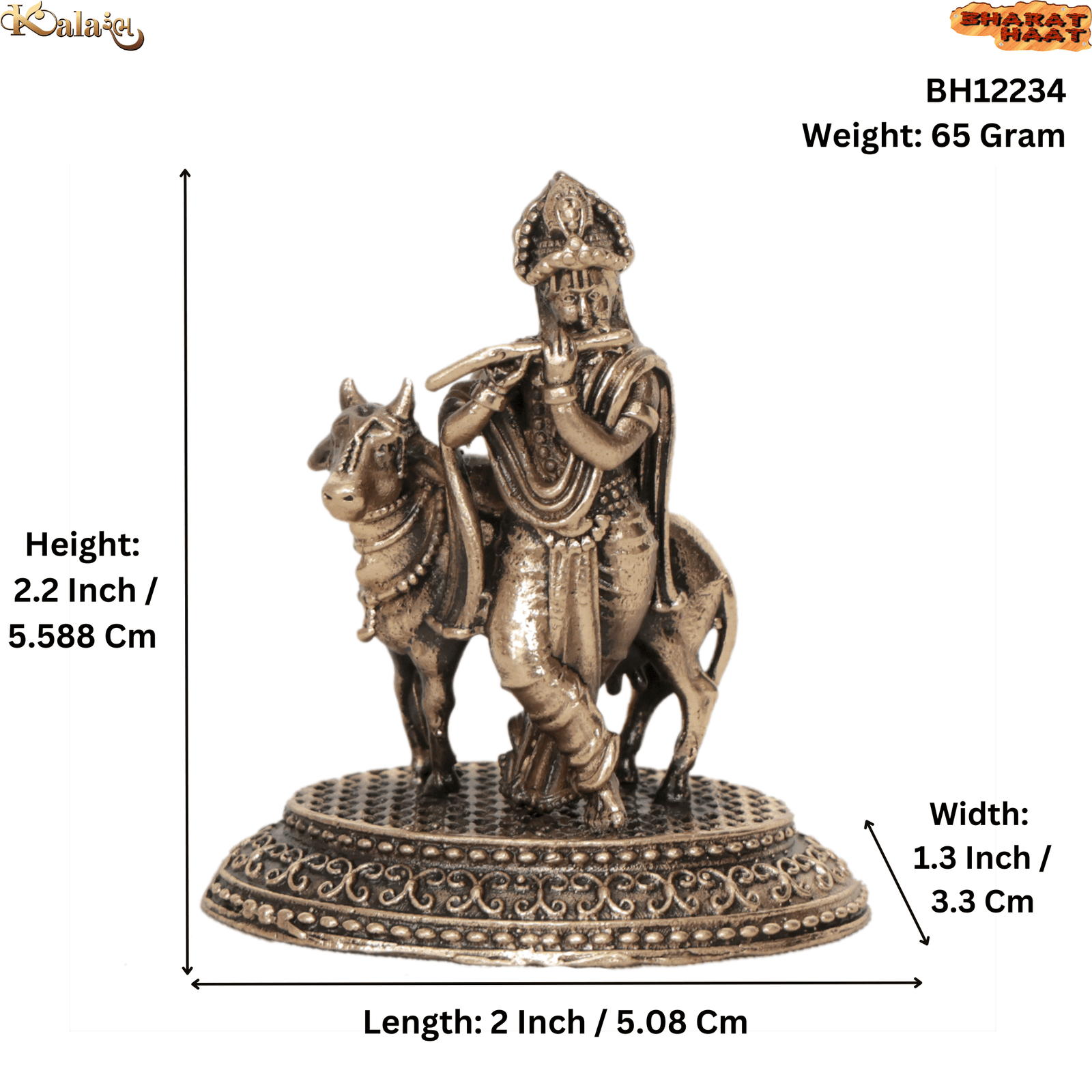 Bring divine blessings, peace, and positivity into your home with this auspicious Brass Lord Krishna with Cow Idol.
