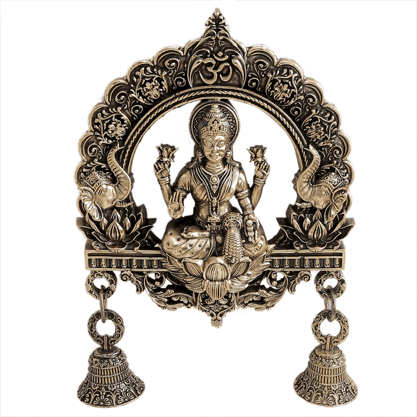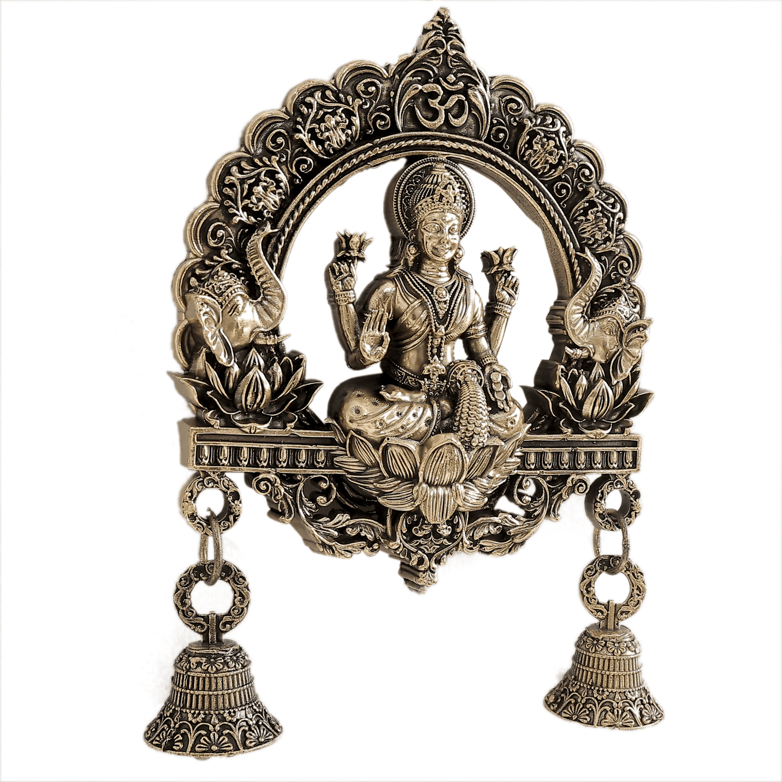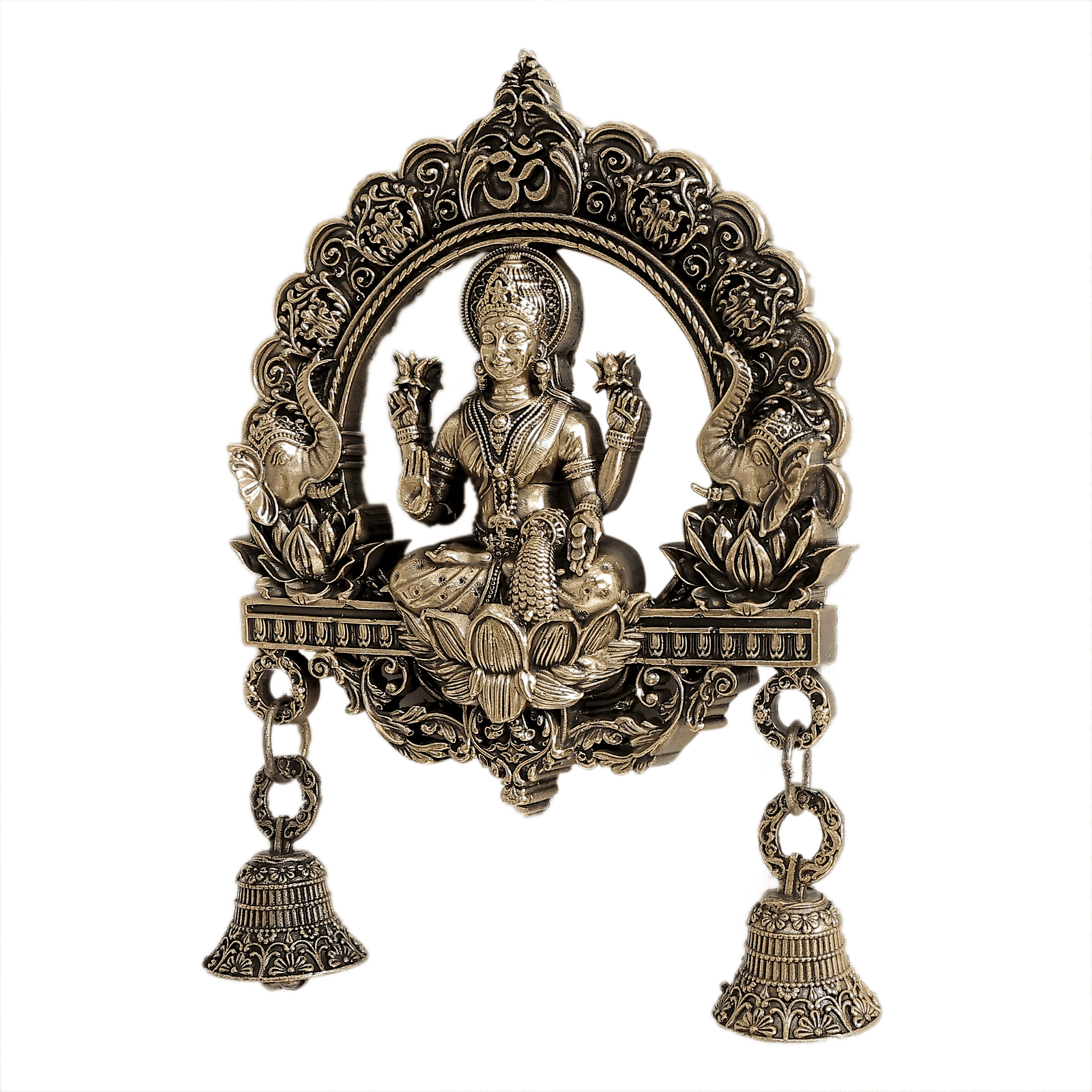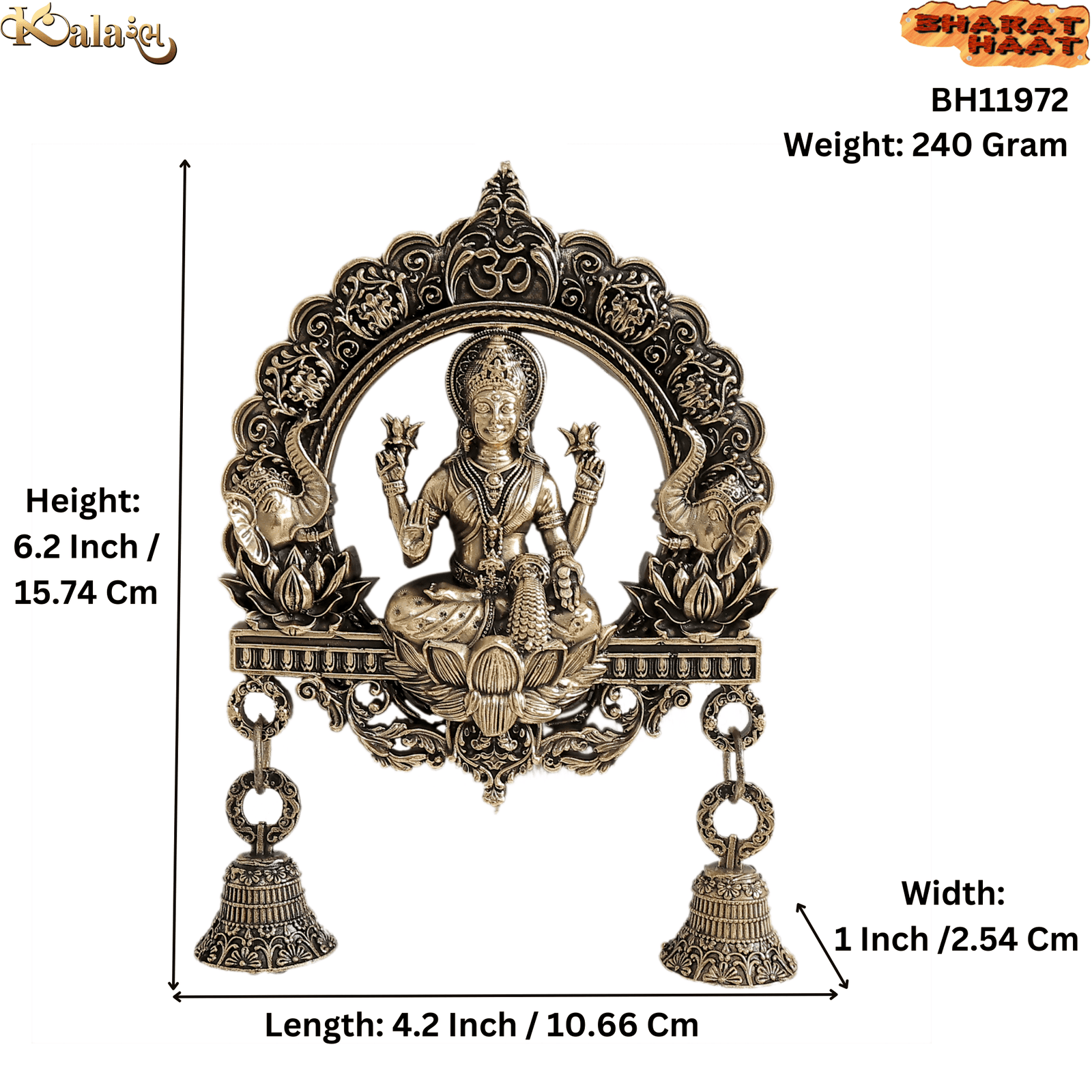 BRASS LAKSHMI BELL HANGING | PREMIUM HANDCRAFTED BRASS WALL HANGING WITH BELL FOR HOME & POOJA DECOR (6.2 INCH, 240 GRAM)