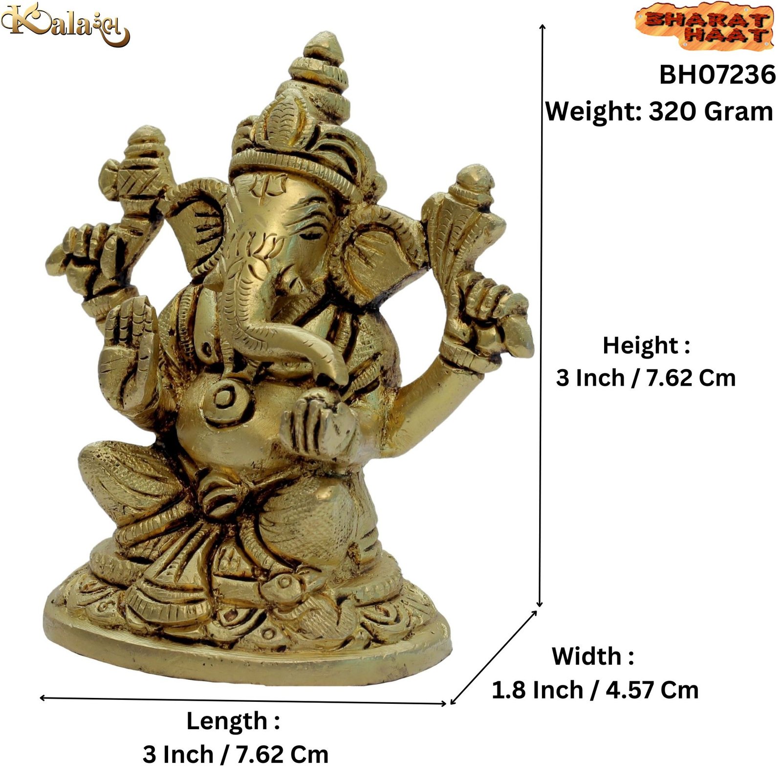 - Â Brass Lord Ganesh Idol Statue Sitting on Flowers Design Round Base Carving Work Ganesha Bhagwan Idol Ganpati Bappa Murti Home Office Entrance Decor Pooja Best for Gift Showpiece HANDICRAFT ART BY BHARAT HAAT.