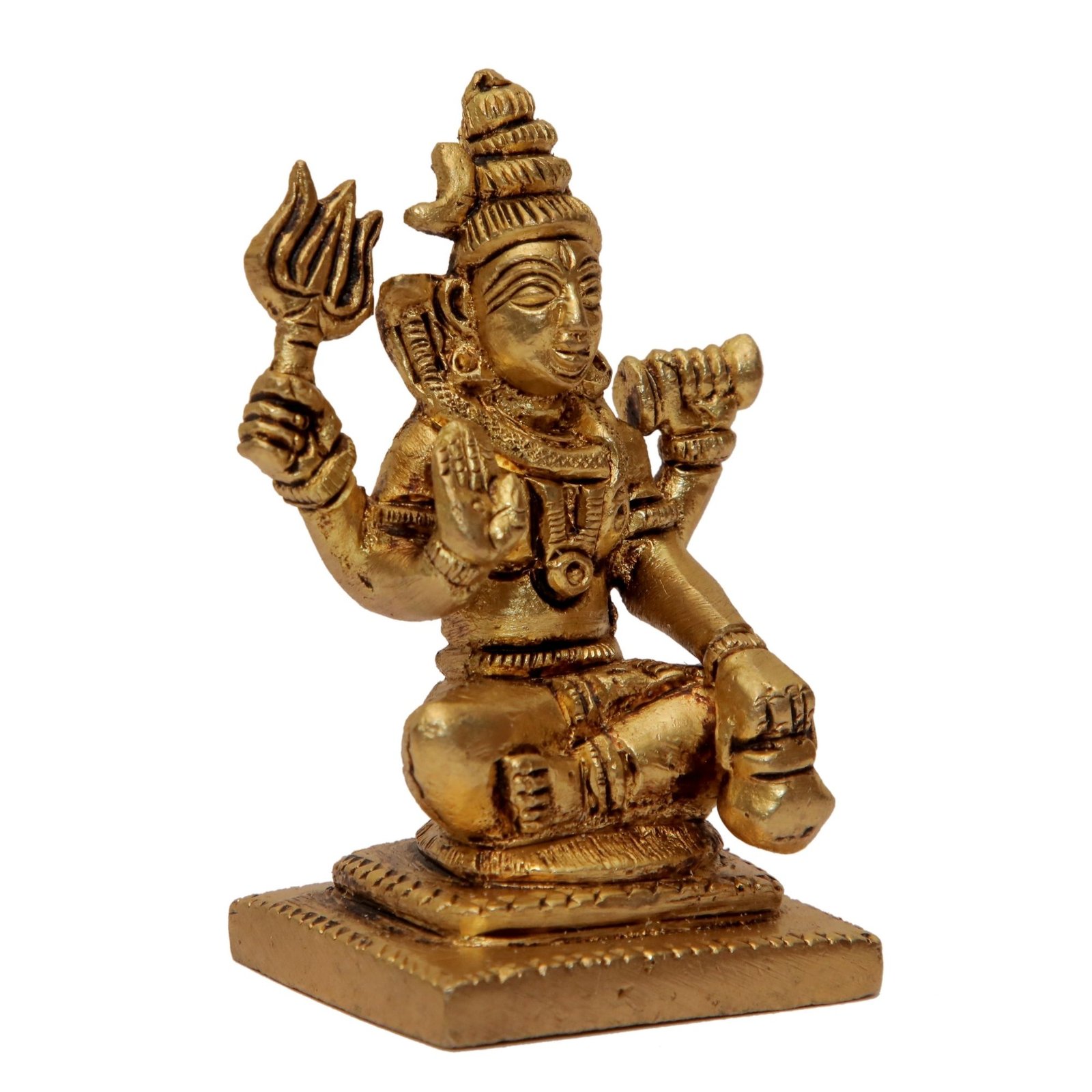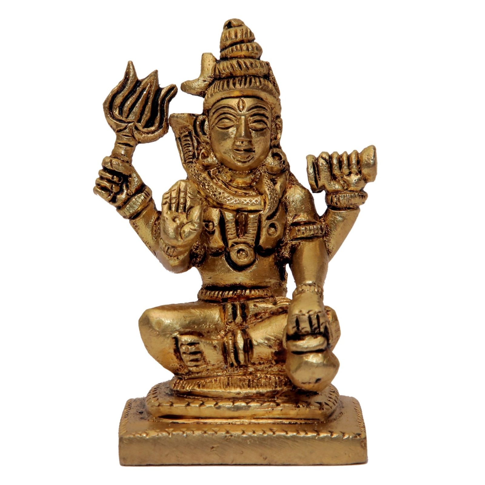 - Â Brass Lord Shiva Statue Hindu God Mahadev Idol Shiv Shankar Deity Figurine Home Table Decor Sitting on Sqaure Base Statue Idol Pooja Best for Gift Showpiece HANDICRAFT ART BY BHARAT HAAT.