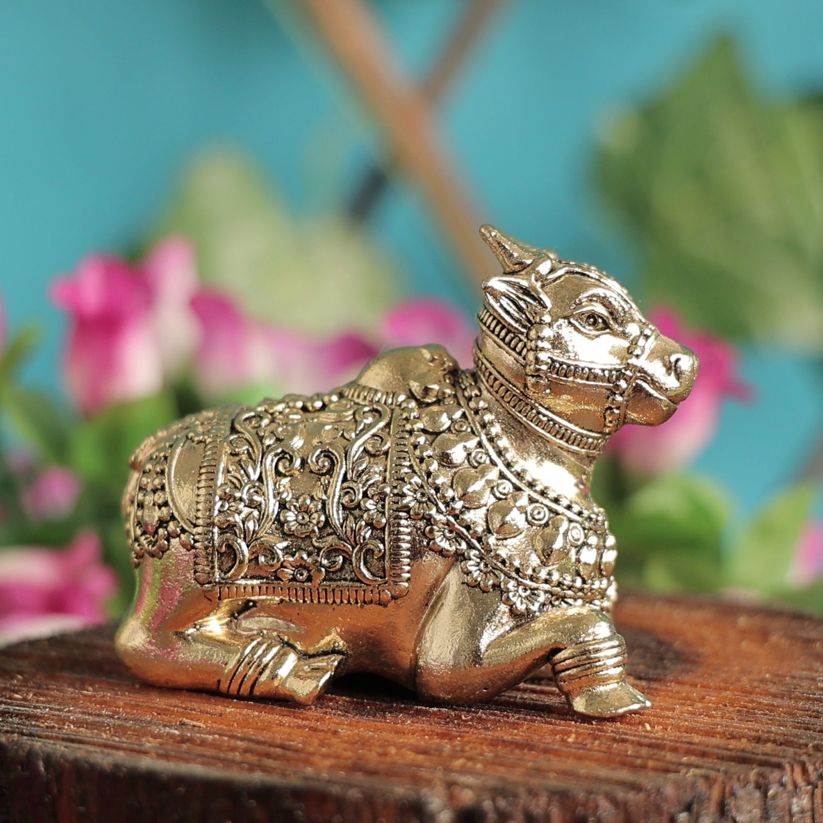 Tags: Brass Nandi Idol, Hindu Temple Decor Item, Large Brass Bull Showpiece, Lord Shiva Nandi Statue, Nandi for Home Mandir