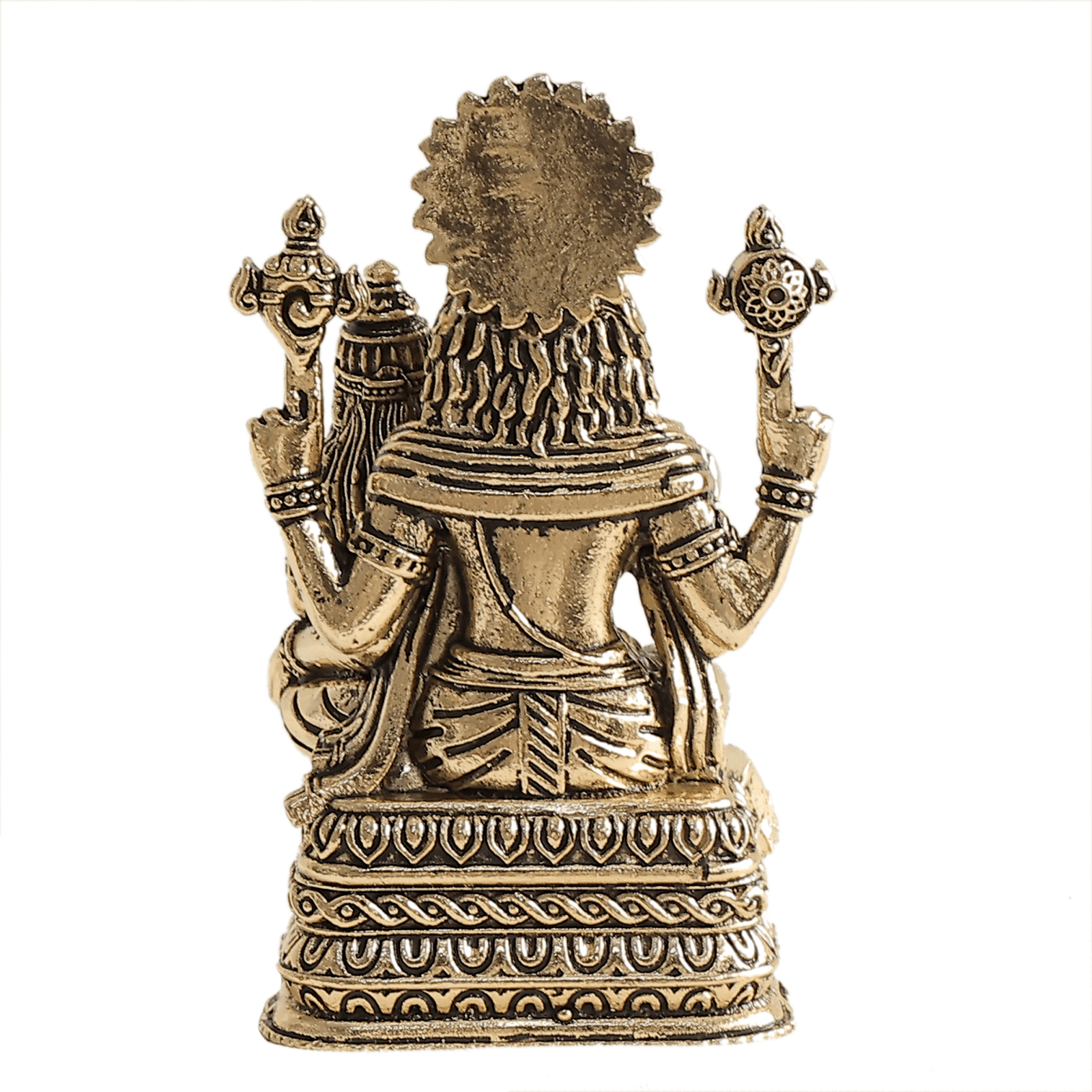 Made from high-quality brass, this idol ensures durability, a traditional golden finish, and long-lasting shine. With dimensions of 2.6 x 1.5 x 4 inches (6.6 x 3.81 x 10.16 cm) and a weight of 270 grams, it is perfectly sized for placement in pooja rooms, shelves, or office spaces. Its compact yet detailed design allows it to fit easily into any sacred setting while enhancing the spiritual ambiance.