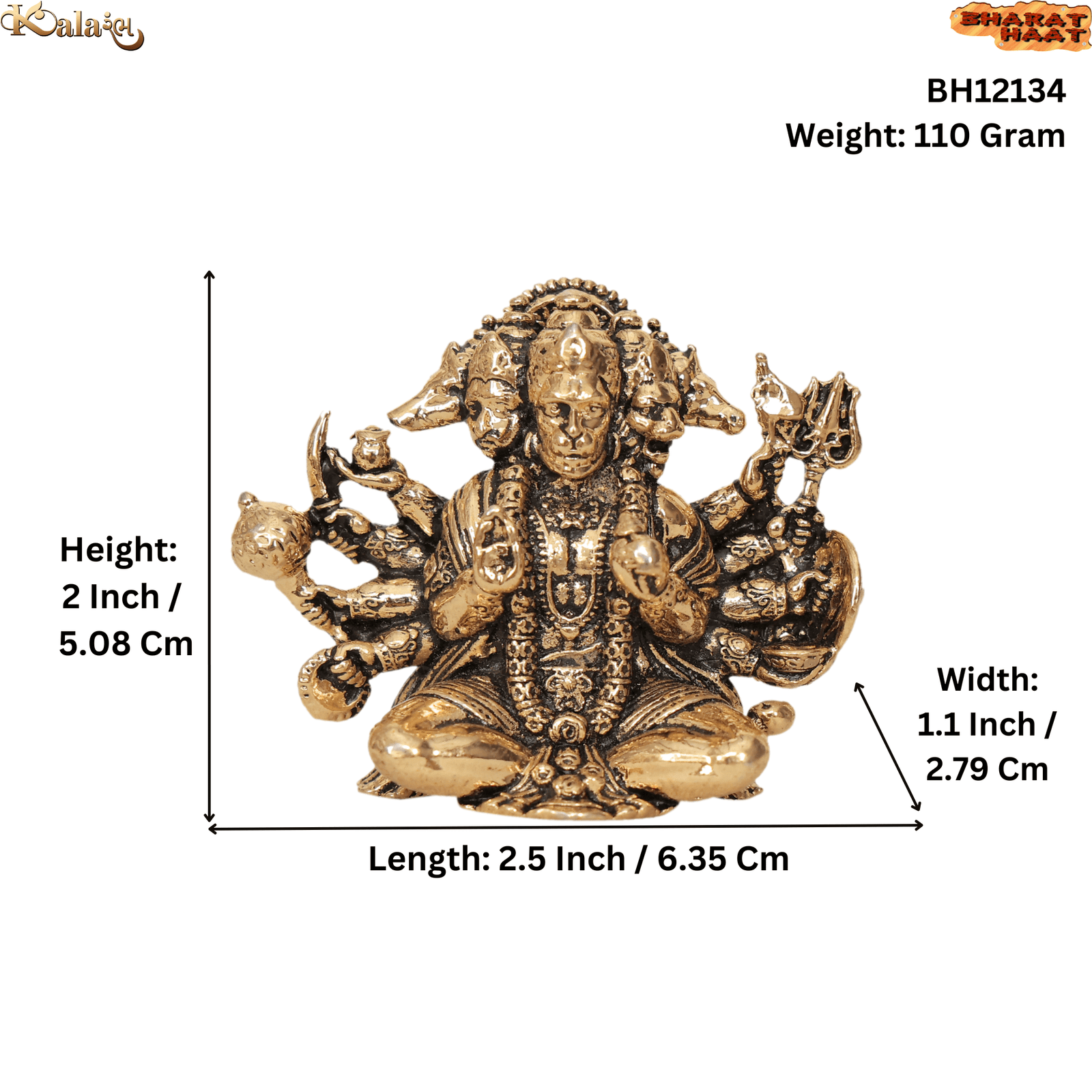 Handcrafted from premium-quality brass with traditional detailing, this compact idol is ideal for home mandirs, office desks, travel pooja kits, lockers, and devotional gifting. Despite its small size, it holds deep spiritual significance and is especially revered for protection and strength.