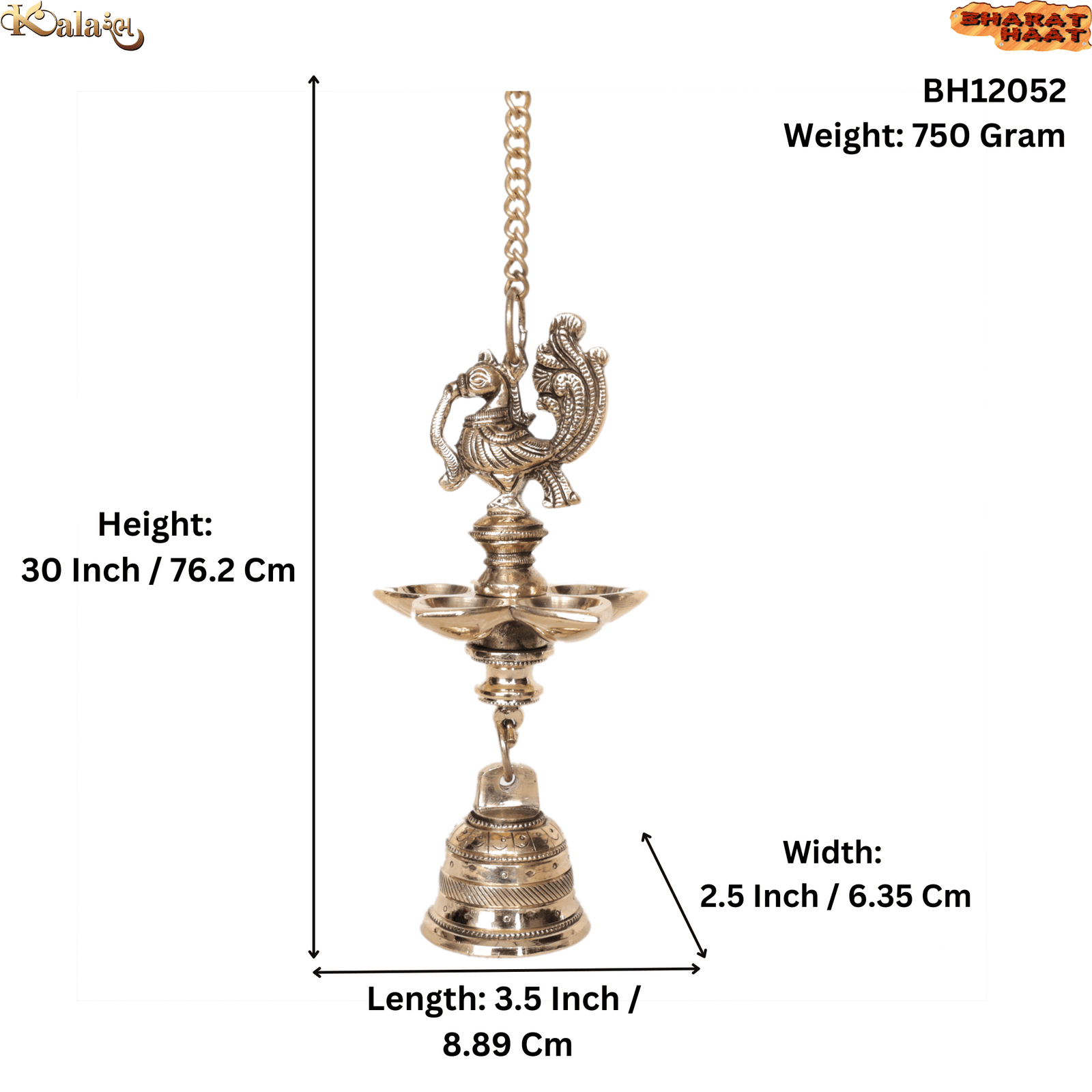Brass Peacock Hanging Diya – Traditional Long Brass Hanging Oil Lamp for Pooja & Home Décor