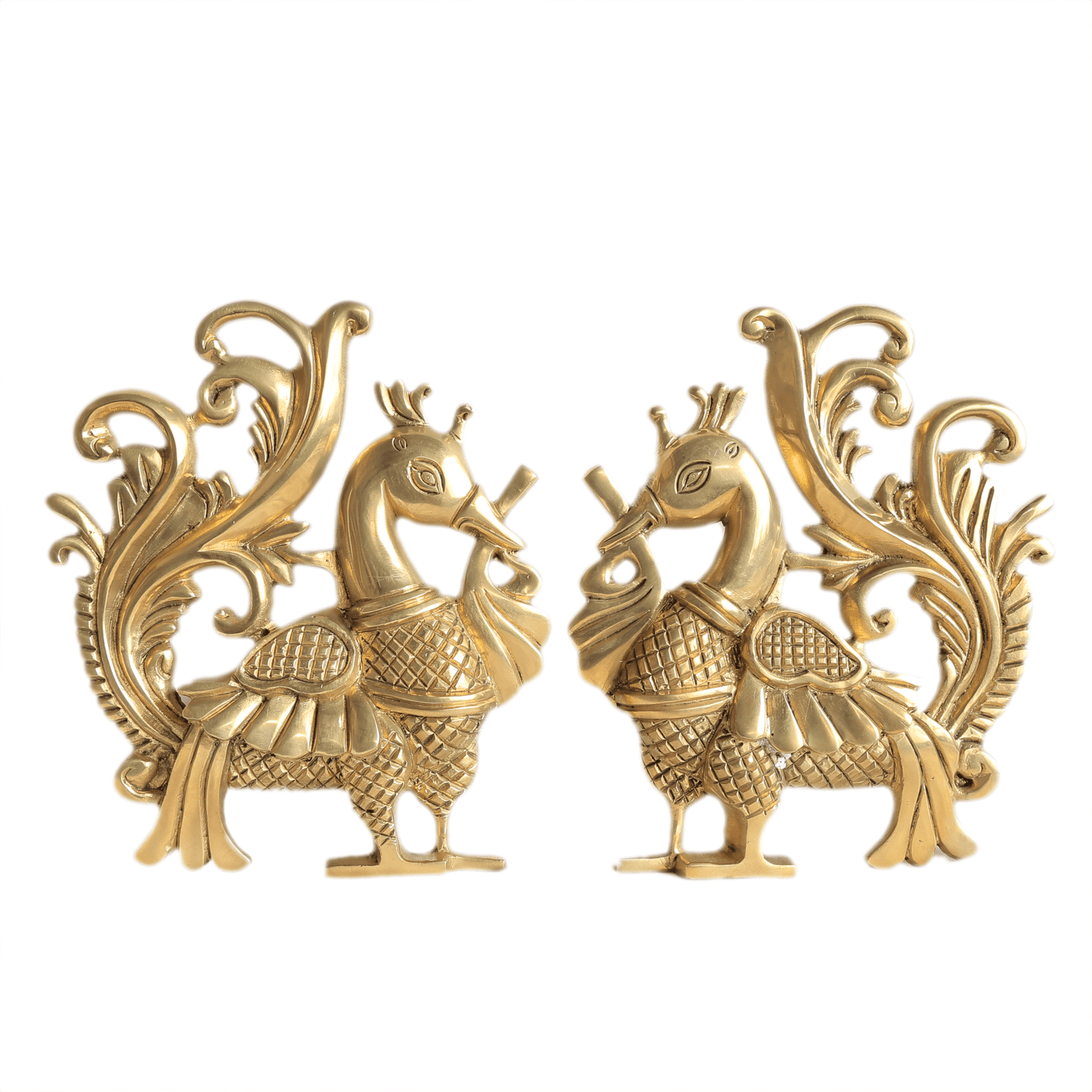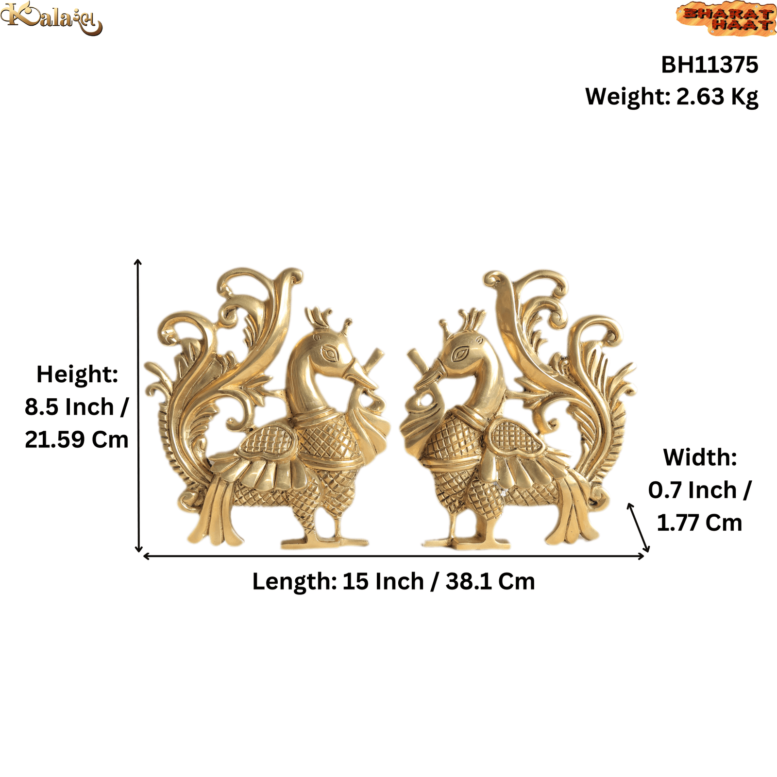 Each piece is crafted by skilled artisans, reflecting the cultural richness of Indian brass handicrafts. With dimensions of 15 x 0.7 x 8.5 Inch (38.1 x 1.77 x 21.59 cm), these sleek brass peacocks serve as an eye-catching wall display while remaining lightweight for easy mounting. The set brings harmony, beauty, and positivity to the environment—symbolizing grace, prosperity, and divine blessings.