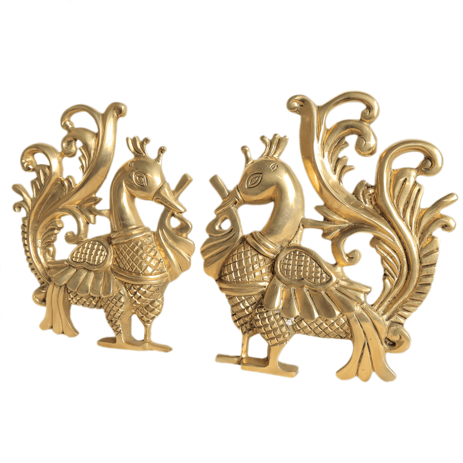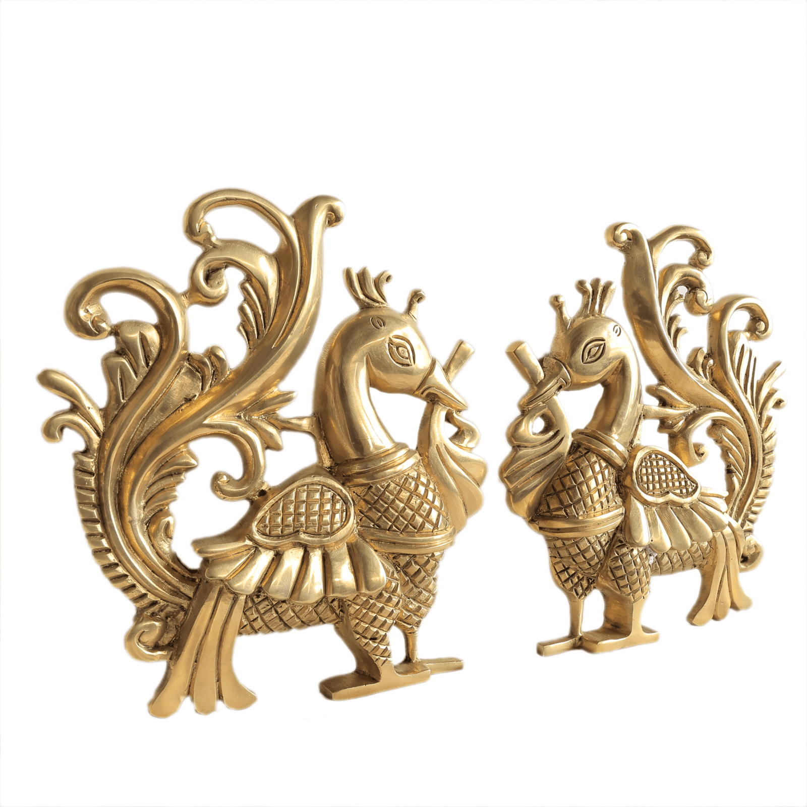 Brass Peacock Set – Elegant Wall Décor Showpiece (2 Pcs)