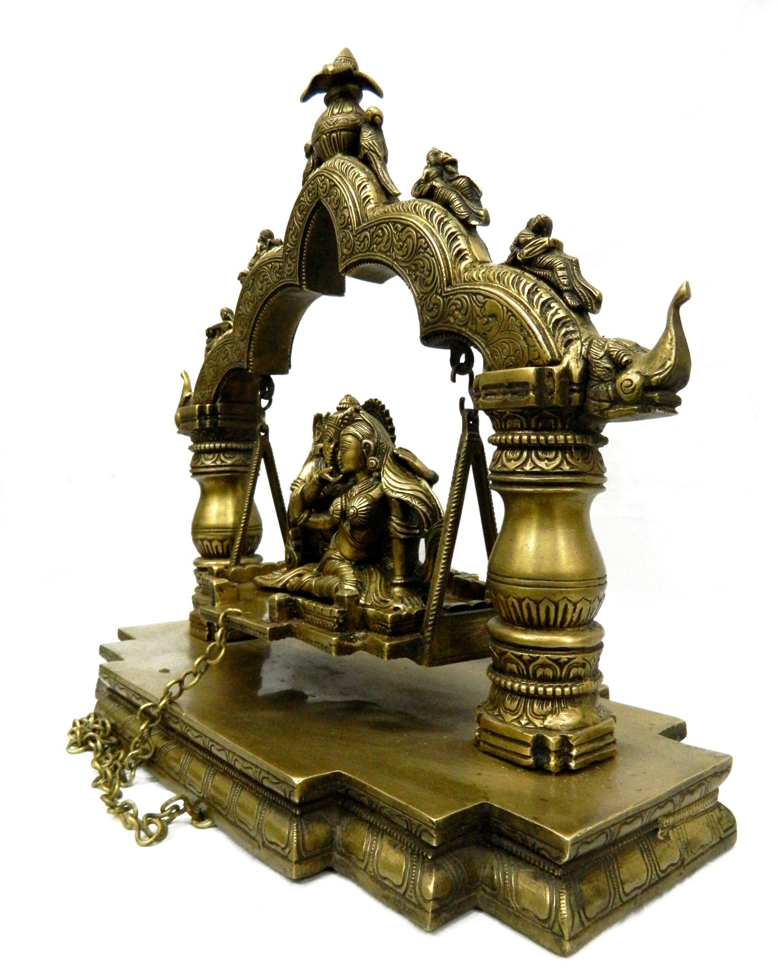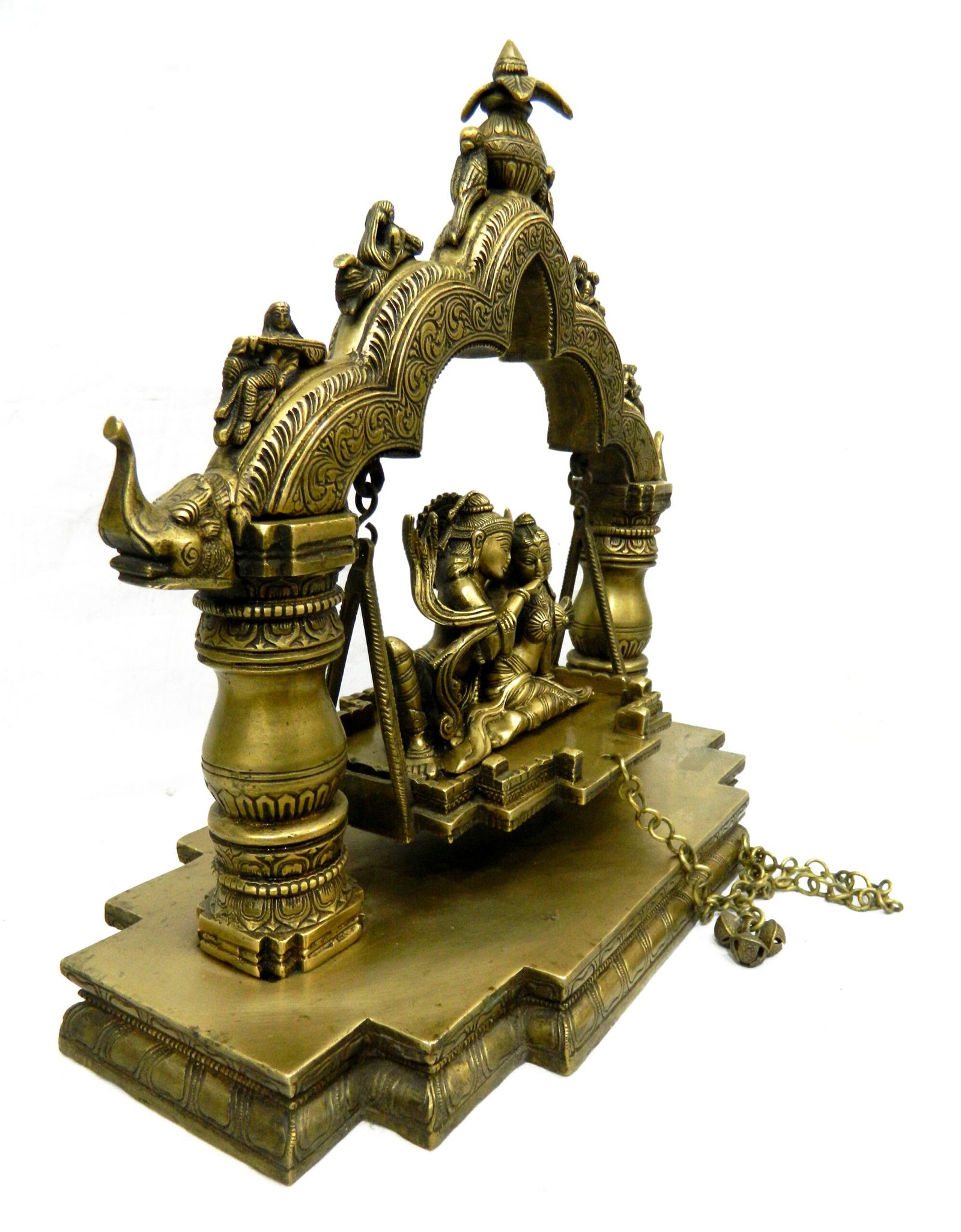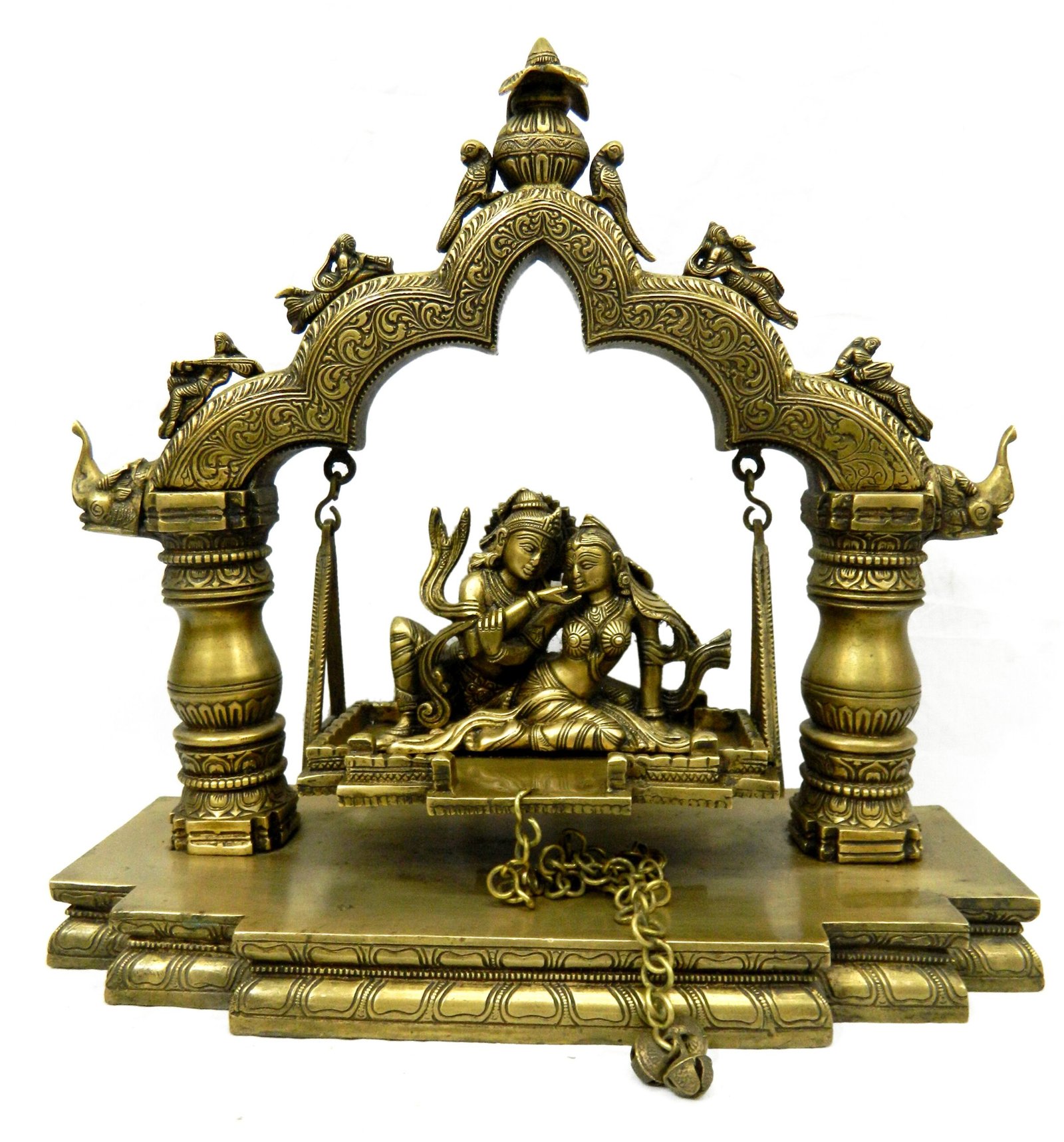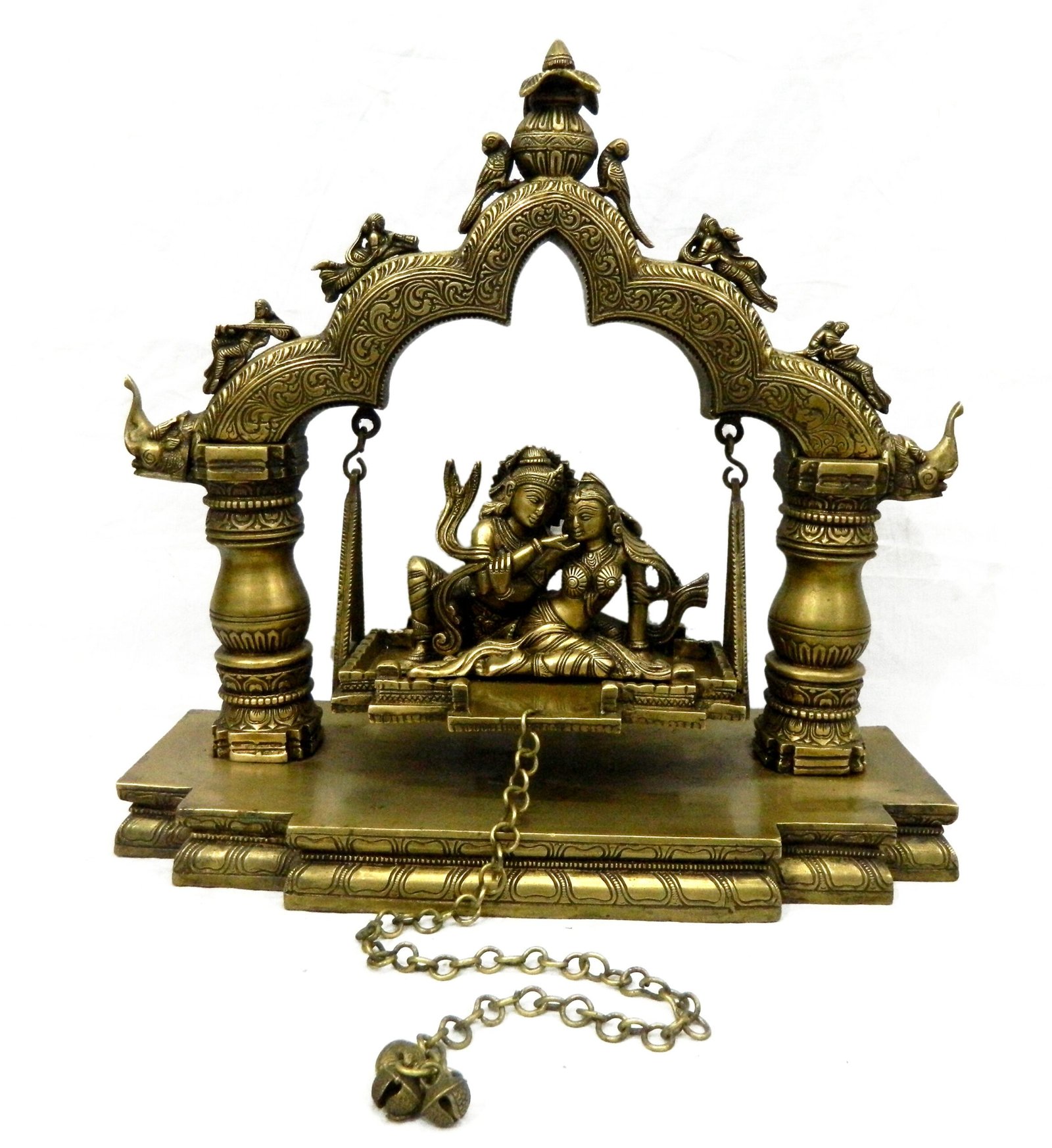 Keywords: Brass Radha Krishna Swing, Jula statue, Radha Krishna decorative sculpture, divine Radha Krishna idol, brass Radha Krishna, swing sculpture, religious home decor, Krishna idol for temple.