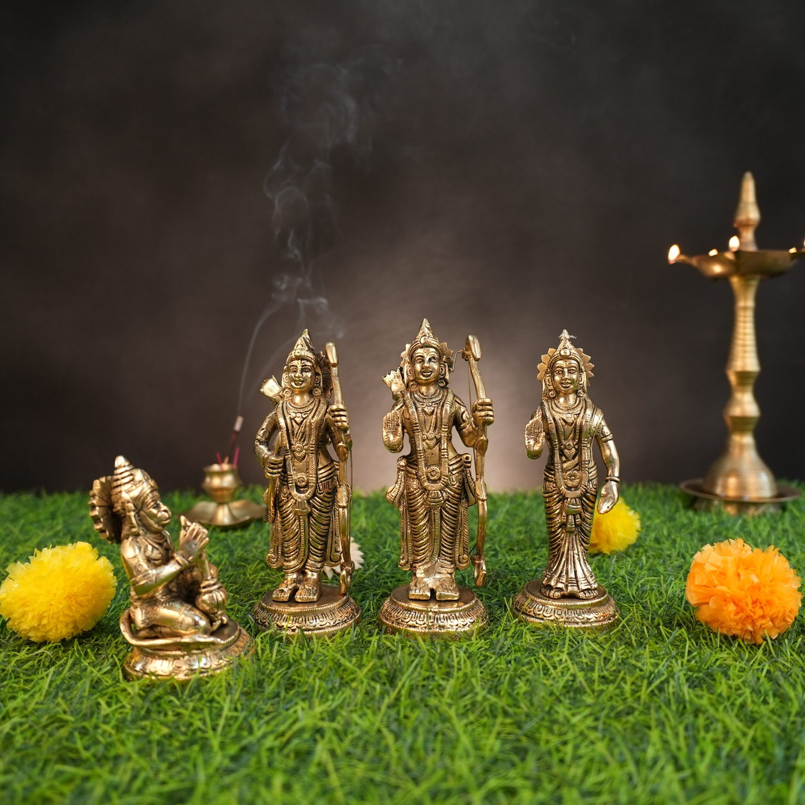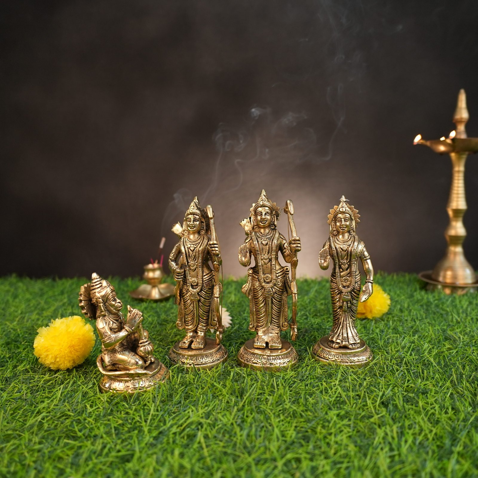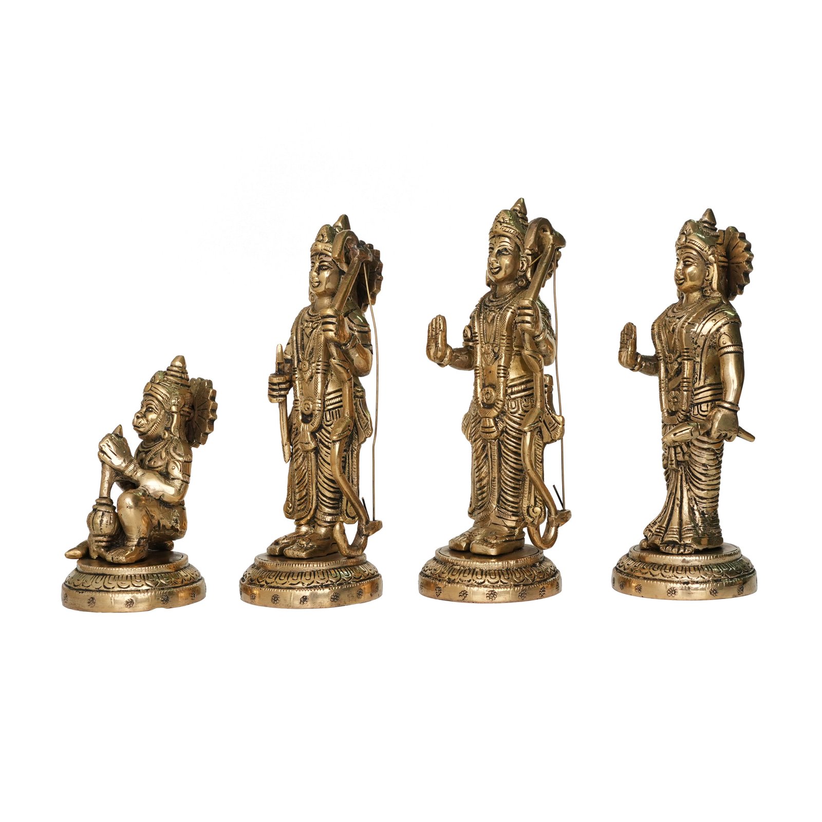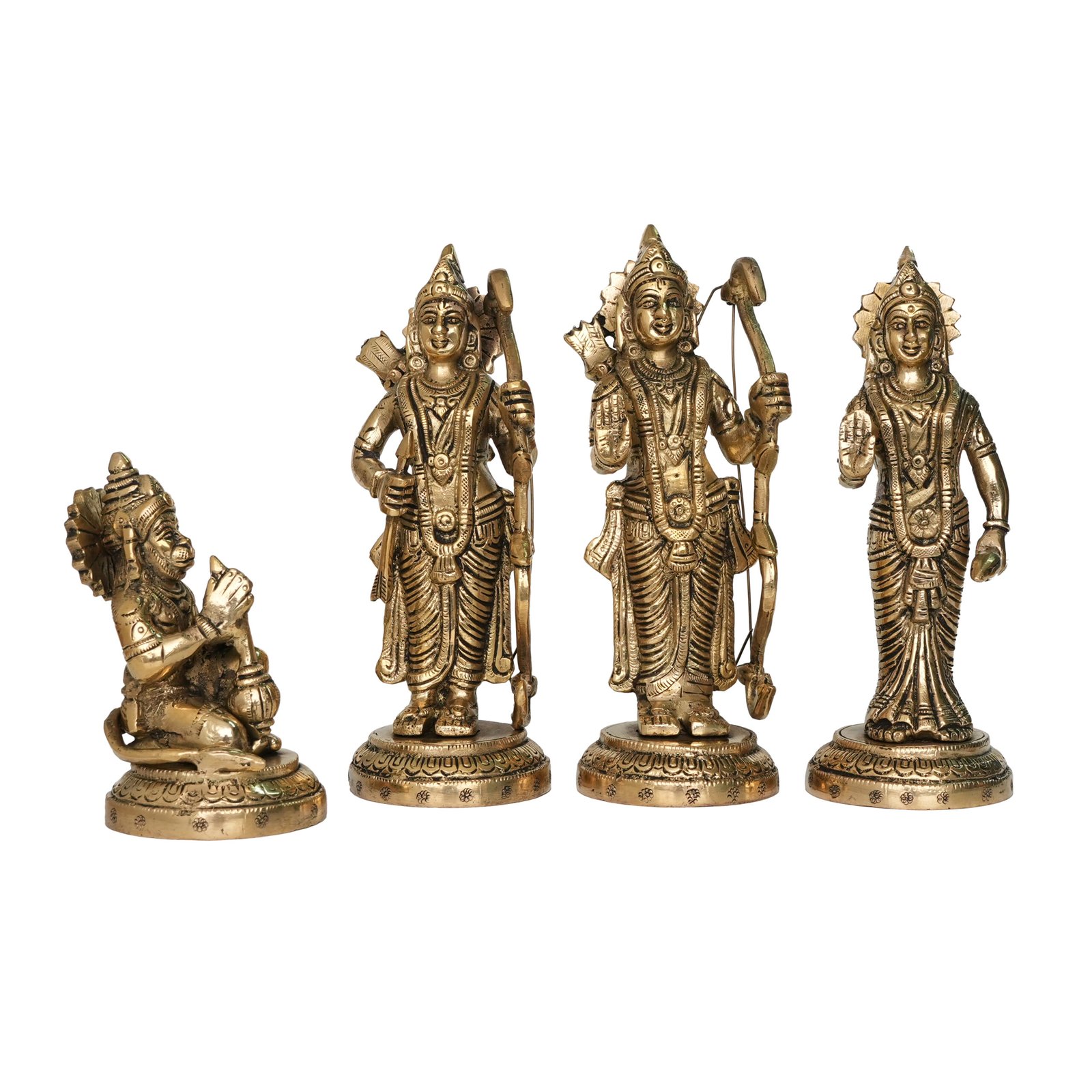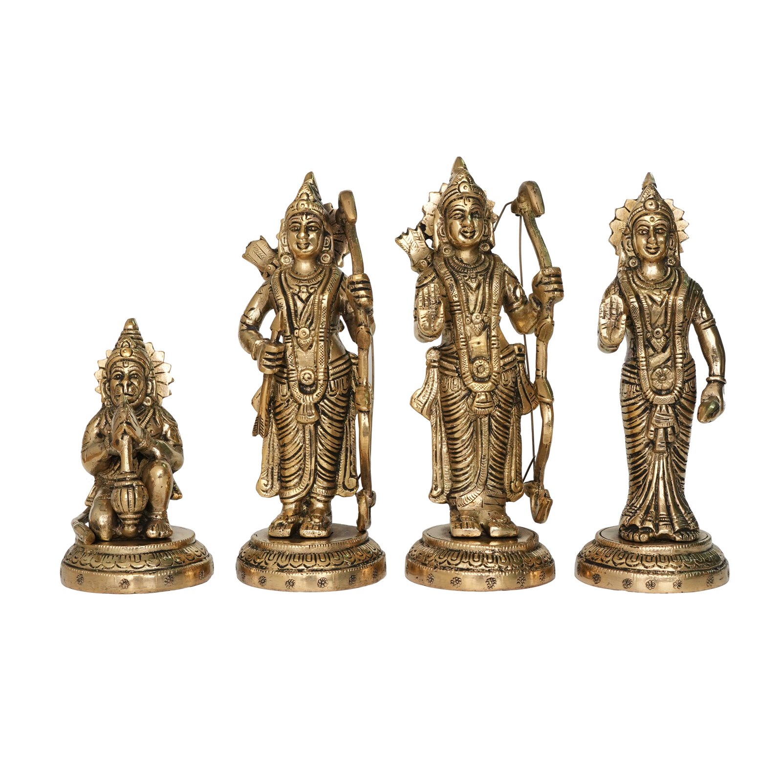 Embark on a divine journey with our exquisite Brass Ram Darbar Statue, portraying the divine family of Lord Ram, Sita Mata, Lakshman, and Hanuman, radiating with divine grace and harmony!