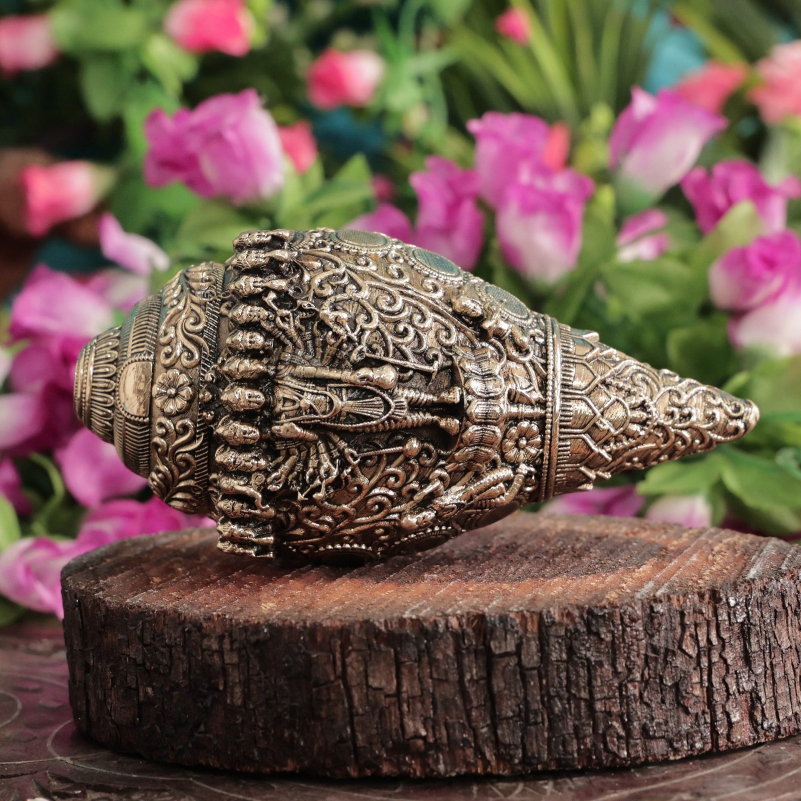 This Brass Shankh with Vishnu Dasha Avatar Design is a sacred and beautifully crafted spiritual artifact symbolizing purity, auspiciousness, and divine vibrations. The Shankh (Conch) holds immense importance in Hindu rituals and is deeply associated with Lord Vishnu, representing the cosmic sound Om and spiritual awakening.