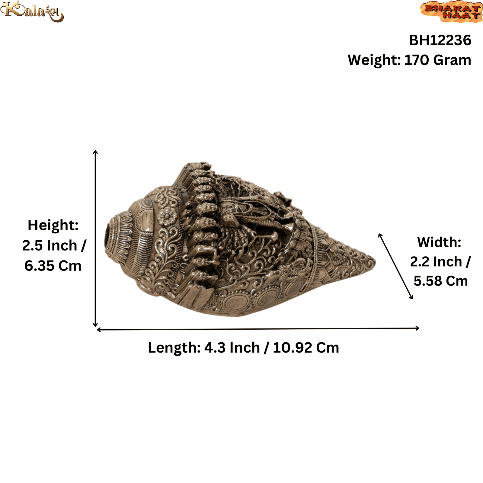 Product Name: Brass Shankh with Vishnu Dasha Avatar Design